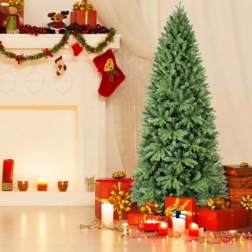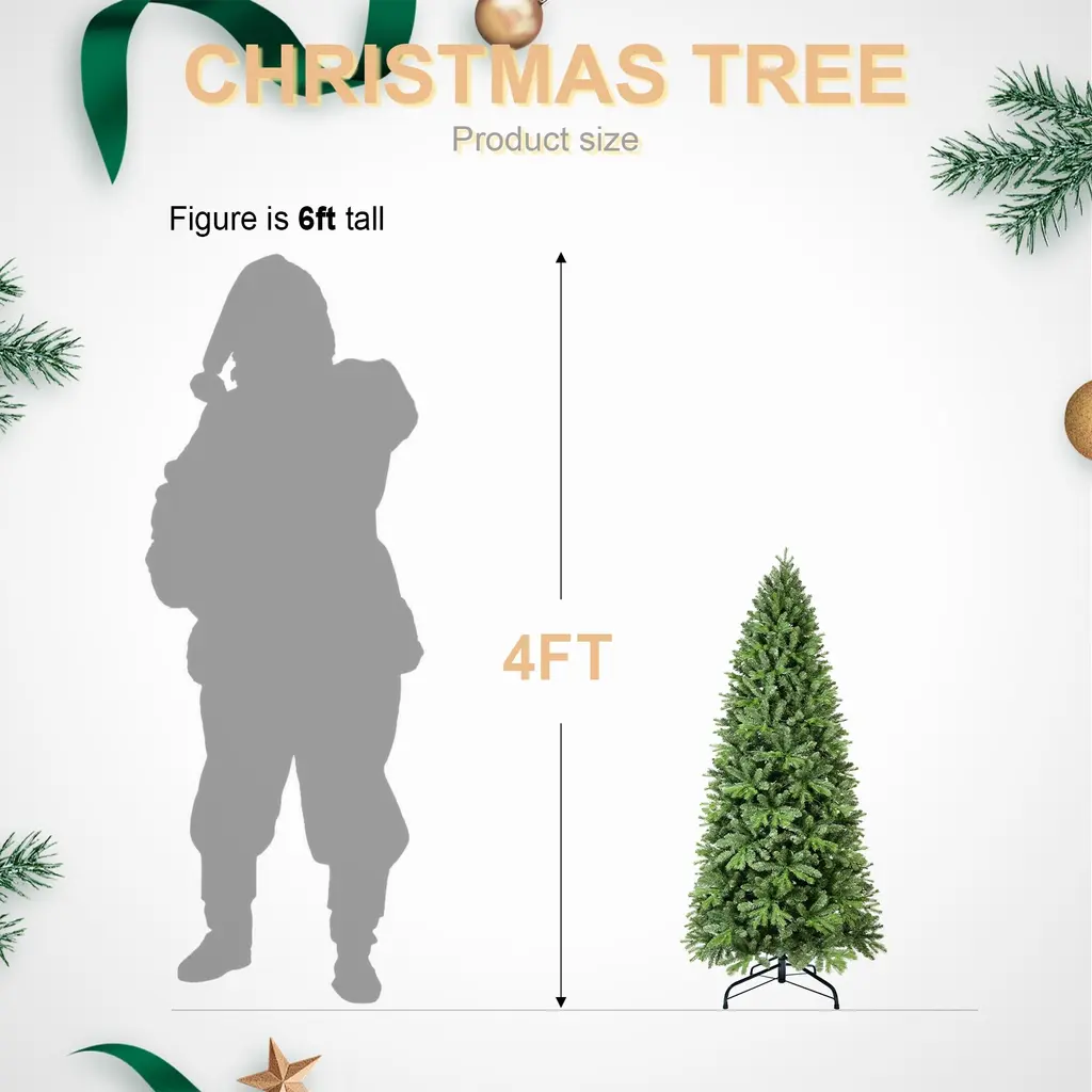 Welcome to our world of Christmas trees! The modern artificial Christmas tree we recommend for you is made of PE/PVC hybrid material, combined with steel wire + iron wire process, which makes the tree more fluffy and realistic, and also features automated unfolding and collapsible base. No need to worry about the tedious installation process, our trees unfold easily and save you time and labor.Material & Quality:Our modern artificial Christmas trees are made of PE/PVC mixed material, which combines the advantages of PE and PVC to make the leaves more realistic and the trees more sturdy and durable. And the structure with steel wire + iron wire craftsmanship gives the tree better stability and support. Thickened metal brackets and poles ensure the stability of the trees, so you don't need to worry about collapsing or deformation.Realistic Appearance:Our modern artificial Christmas trees are made of PE/PVC foliage, which makes the trees look more fluffy and realistic, as if they are real greenery. Not only that, we also consider the effect of monitor and light angle environment on the color, so the real thing may be slightly different from the picture. But please rest assured that our products can bring you a beautiful Christmas atmosphere in any environment.Convenient to use:Our modern artificial Christmas trees come with metal hinges and a collapsible base, which means you can unfold and fold the tree quickly and easily. There's no need for laborious disassembly and assembly, making your Christmas preparations much simpler. We pay attention to the details to make your holiday season more enjoyable.Customer Service:If you have any questions about our products, our team is ready to answer them. Whether it's about the material, quality, appearance or usage, we will be happy to help you. Your satisfaction is our greatest pursuit.Choose our modern artificial Christmas tree now to bring a cozy Christmas atmosphere to your home. the PE/PVC hybrid automatic tree, steel wire + wire process, automated structure, and easy to unfold, fluffy and realistic PE/PVC leaves will add more festivity and beauty to your holiday. Hurry up to contact us to buy your ideal modern artificial Christmas tree! Let's enjoy the joy and warmth of Christmas together.Description:Dimension: