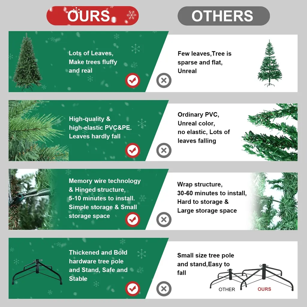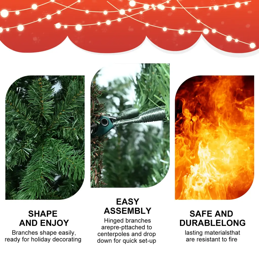 【Eco-Friendly & Energy Saving】Artificial Christmas Tree, eco-friendly and reusable, creates a warm holiday atmosphere for your home.【Highly Realistic】Made of premium eco-friendly PVC material with realistic pine needle design, the soft touch makes you feel like you're in an actual Christmas forest.【Multiple Sizes & Styles】Offering a variety of sizes and styles to choose from, meeting the needs of different homes and settings.【Easy to Assemble】Featuring a quick-install design, effortlessly set up your Christmas scene and save time and effort.