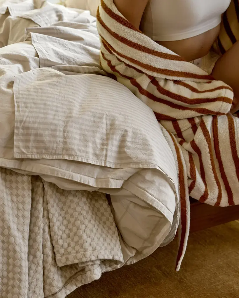 Add a layer of pure comfort with our oversized top sheet. Crafted in Portugal from 100% premium, certified long-staple Egyptian cotton our percale sheets are lightweight and durable with a crisp finish that only gets better withtime.