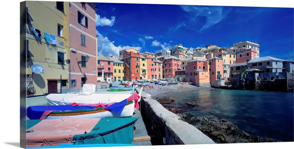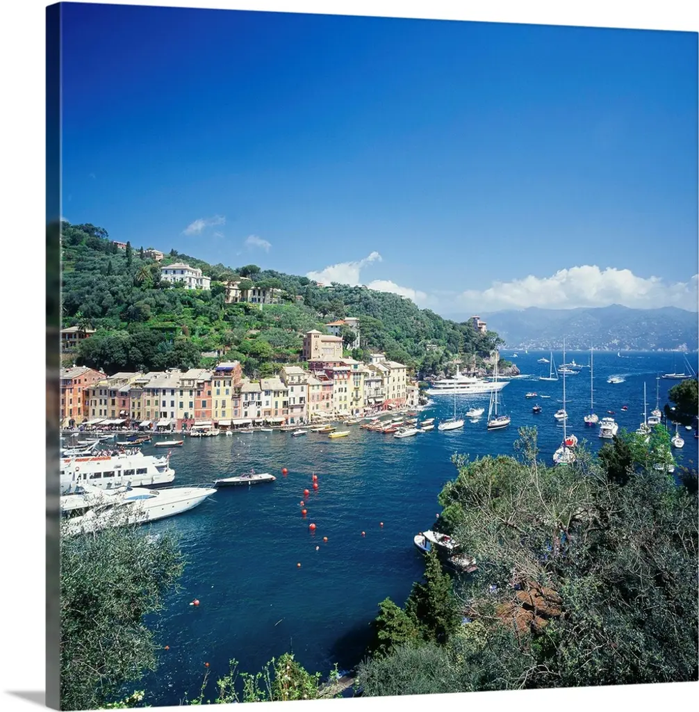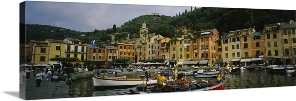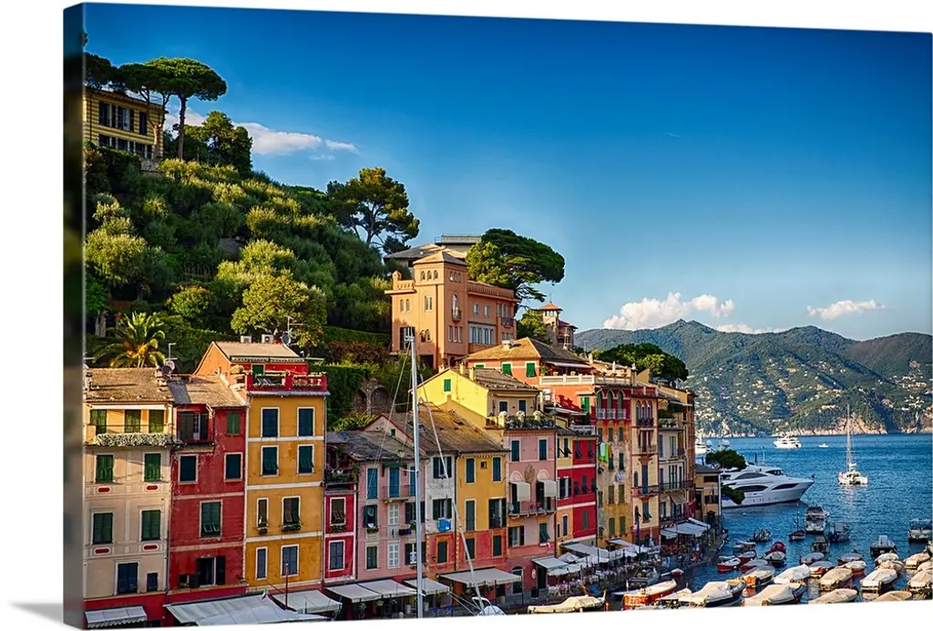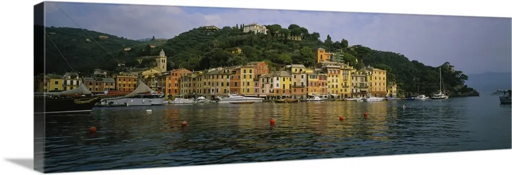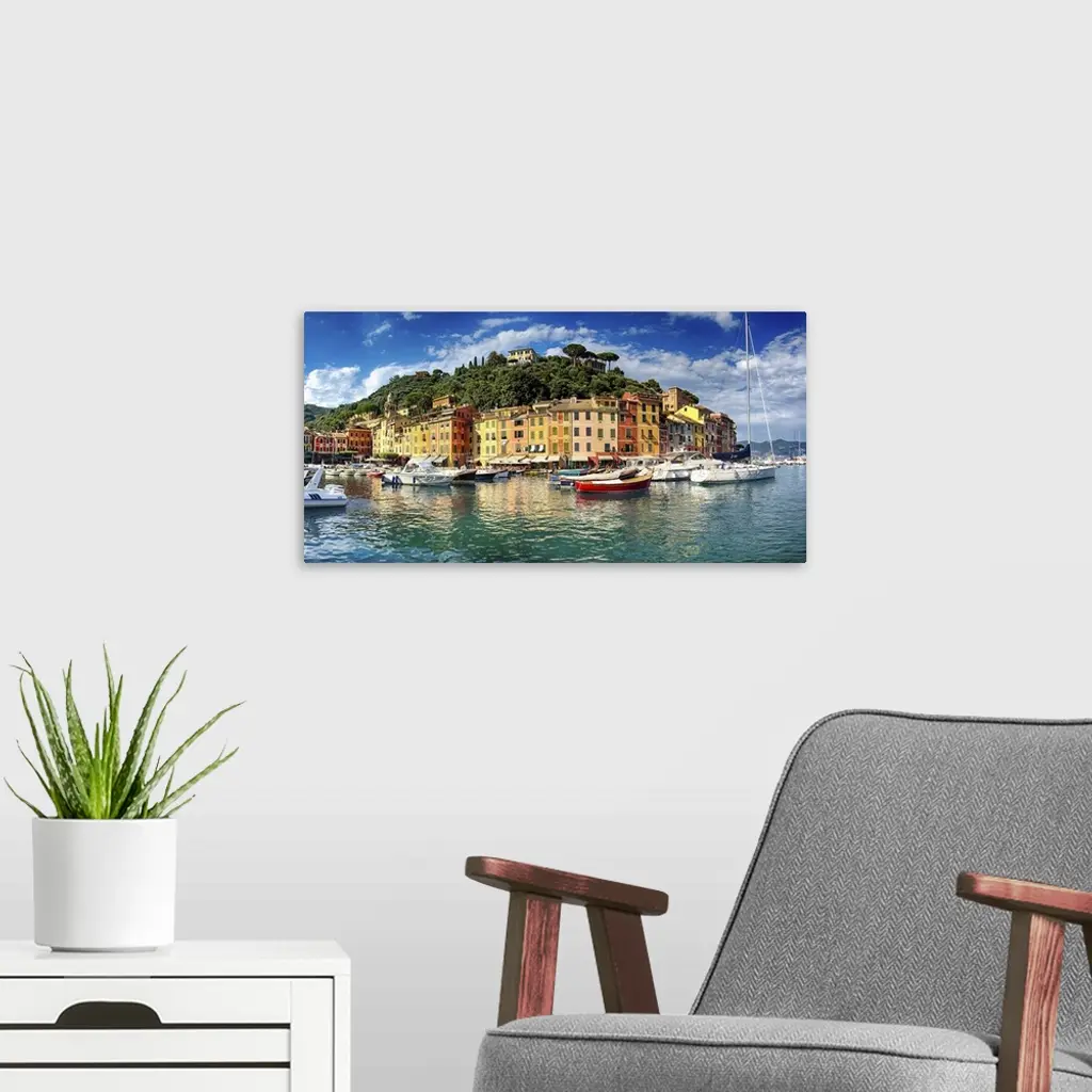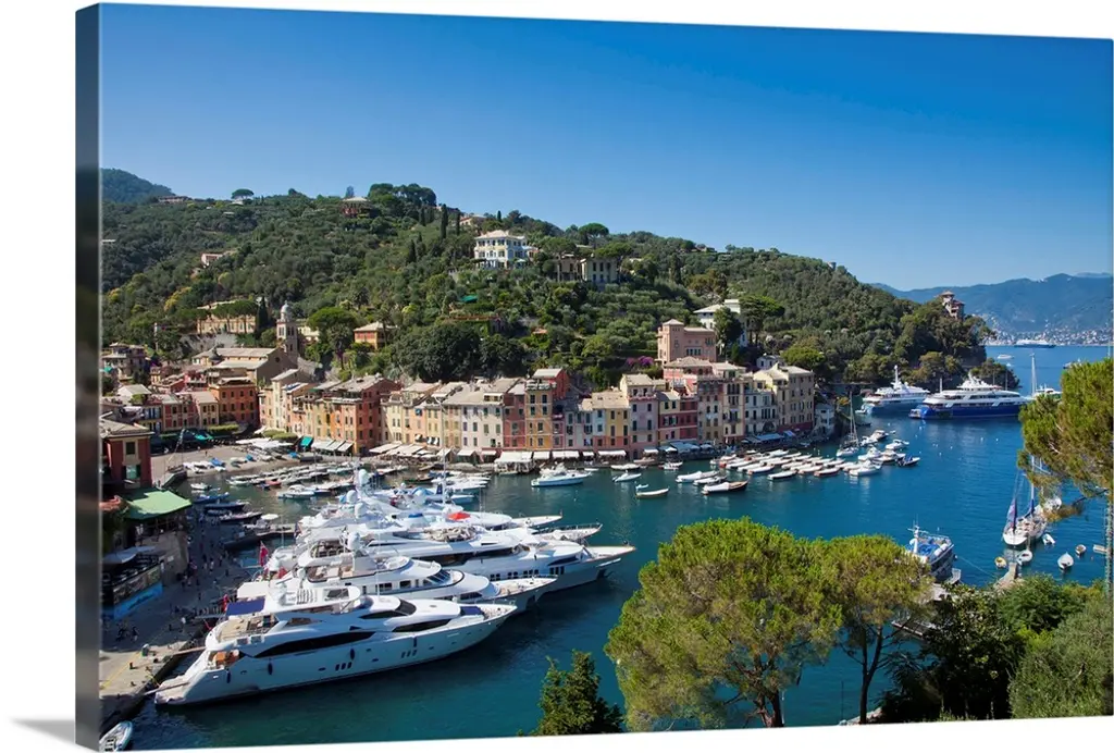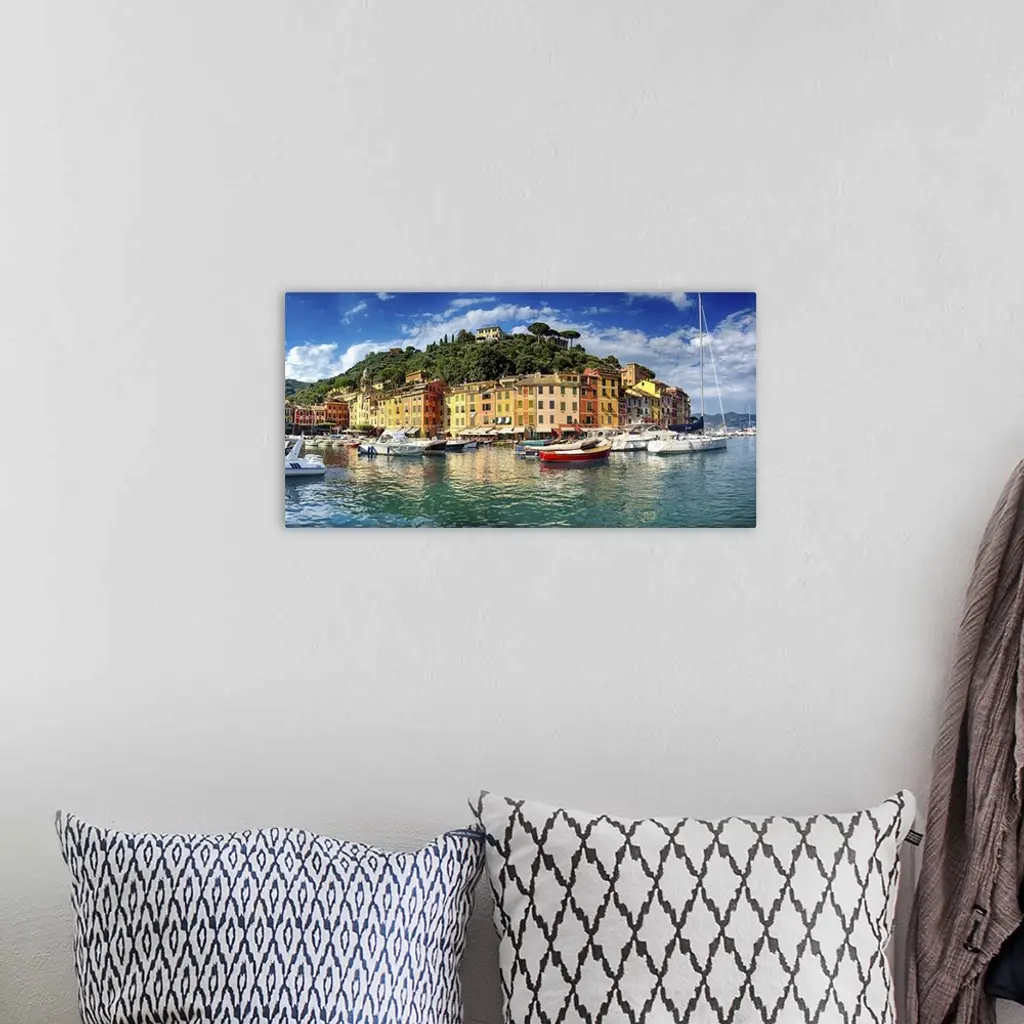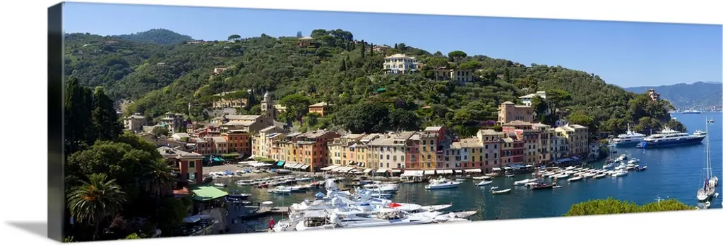Low angle panoramic view of Portofino Harbor, Liguria, Italy.