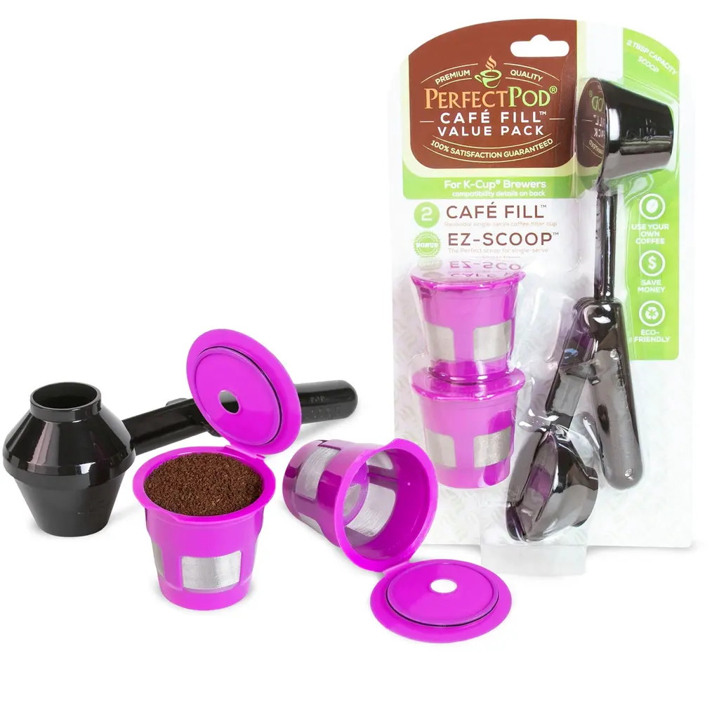 Perfect Pod Cafe Fill Value Pack, 2 Pods With Ez-Scoop + Cafe Filters (200-Count) - Pink