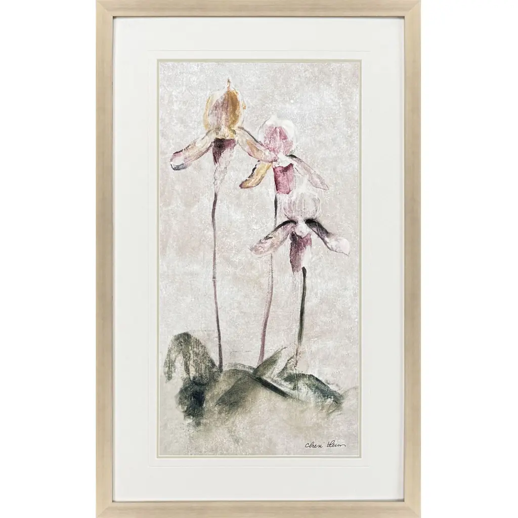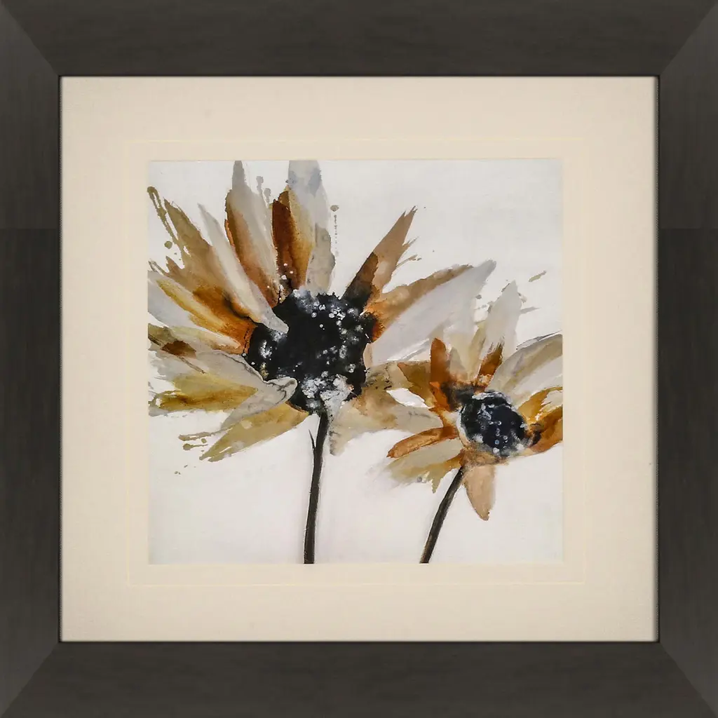 Beautiful poppies feature premium matting and v-groove details. Framed in a flat profile champagne gold finish with antique distressing.