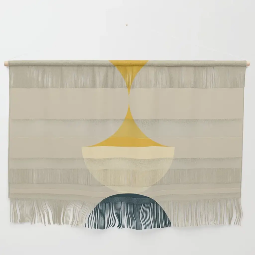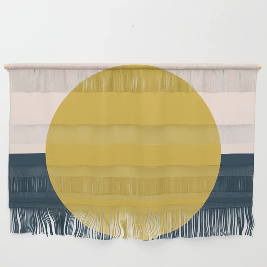 Perfection. Mustard Yellow Sun Dot On White Wall Hanging