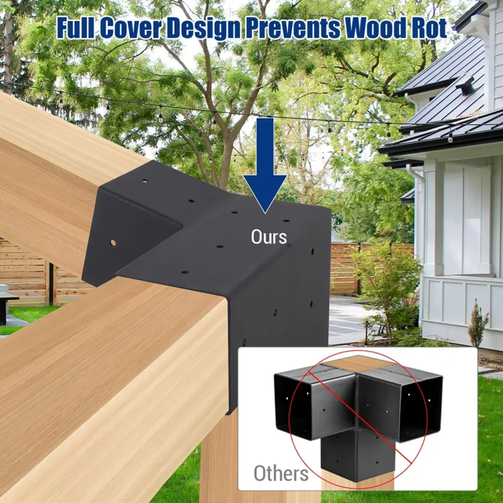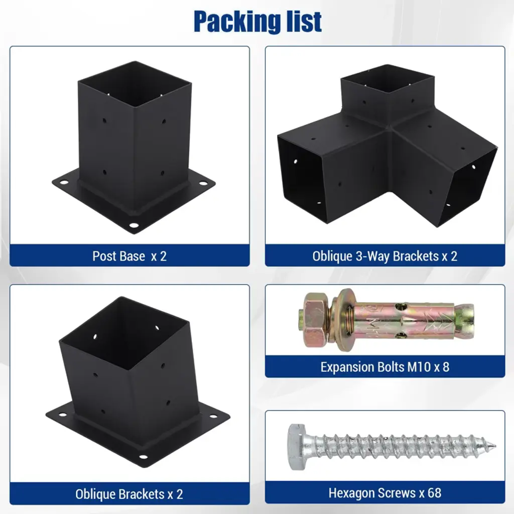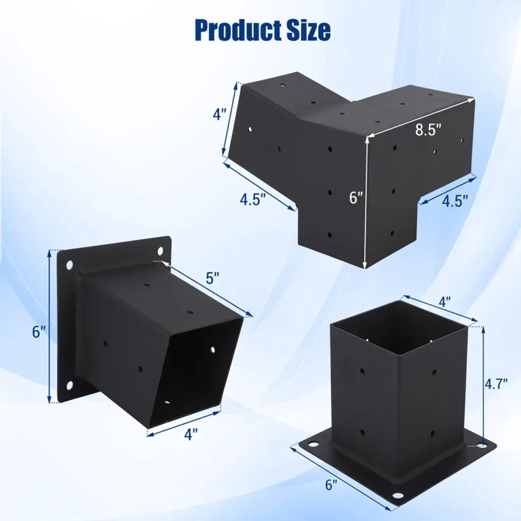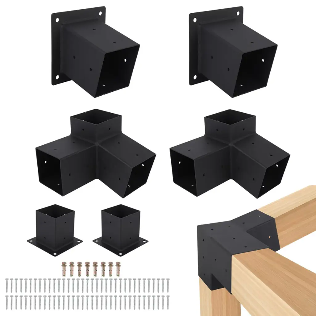 Pergola Bracket Kit 4''x4''(inner 3.6x3.6), 6Pcs (2pcs 3-way Slanted, 2Pcs Slanted Base, 2Pcs Base) For Gazebos, Patio Pergolas, Log Cabin Outdoor
