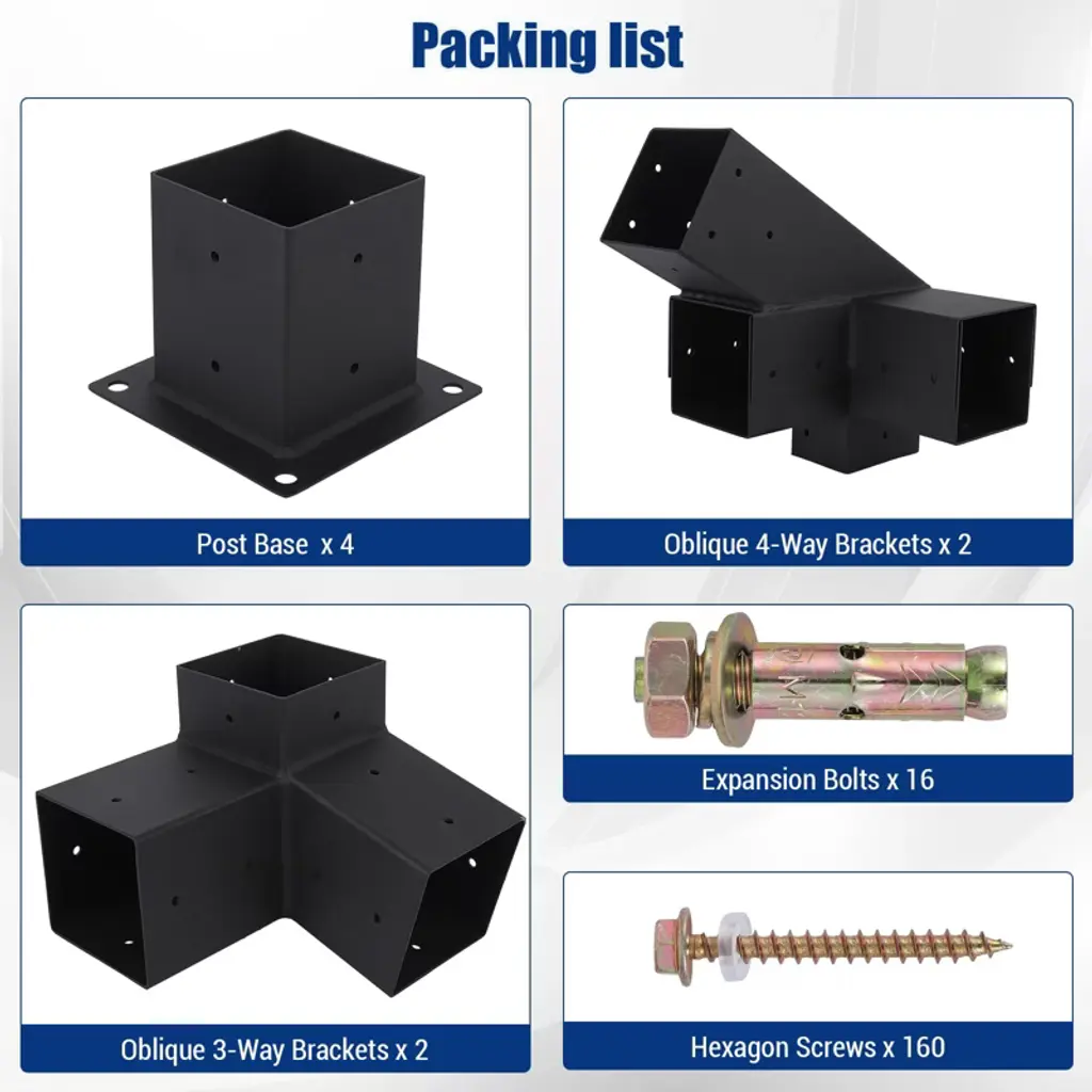 Pergola Bracket Kit 4''x4''(inner 3.6x3.6),10pcs (2pcs 3-way Slanted, 4Pcs 4-way, 4Pcs Base) For Gazebos, Patio Pergolas, Log Cabin Outdoor