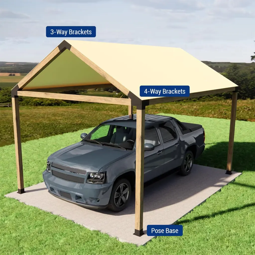 With a built-in hanging hole, our brackets facilitate the easy installation of a sunshade sail, efficiently blocking sunlight and rain while safeguarding the interior against rain .The assembly process is straightforward: simply cut the wood to the desired lengths, insert it into the brackets, and secure. This user-friendly kit is perfect for DIY enthusiasts of all skill levels.