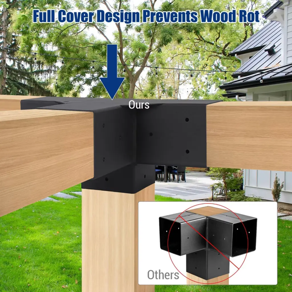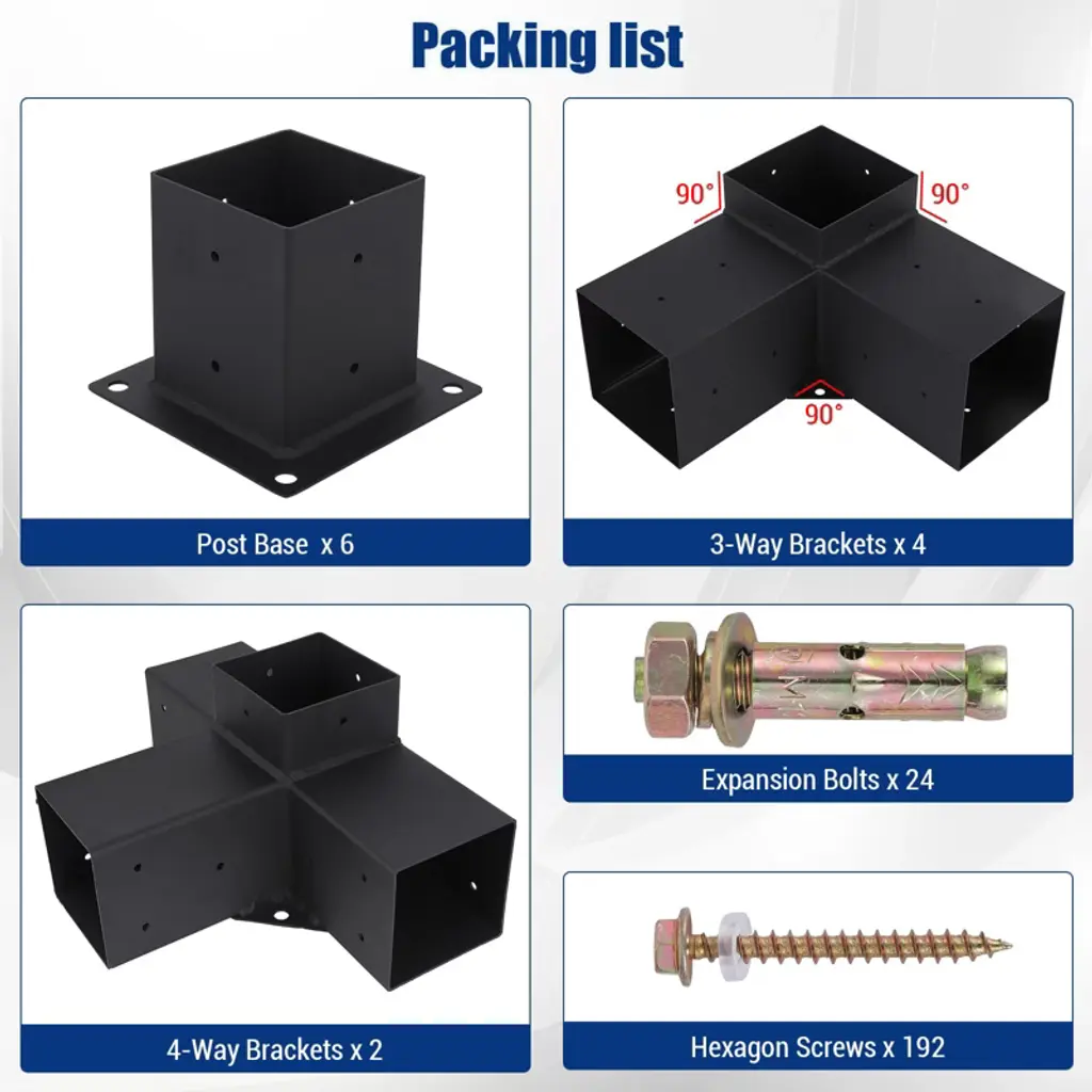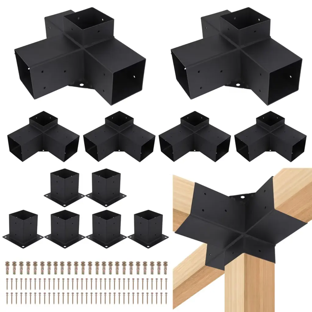 Pergola Bracket Kit 4''x4''(inner 3.6x3.6),12pcs (4pcs 3-way Slanted, 2Pcs 3-way, 6Pcs Base) For Gazebos, Patio Pergolas, Log Cabin Outdoor