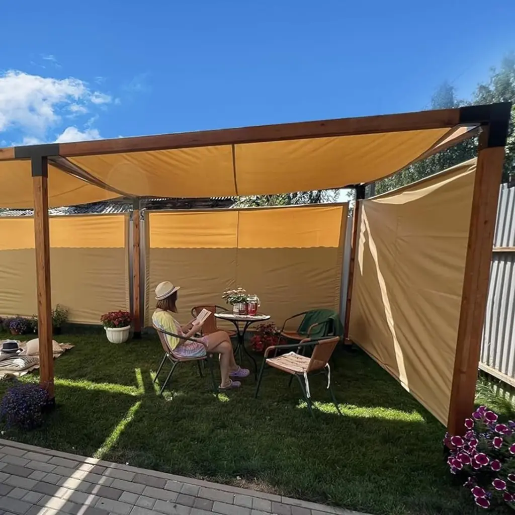 With a built-in hanging hole, our brackets facilitate the easy installation of a sunshade sail, efficiently blocking sunlight and rain while safeguarding the interior against rain .The assembly process is straightforward: simply cut the wood to the desired lengths, insert it into the brackets, and secure. This user-friendly kit is perfect for DIY enthusiasts of all skill levels.