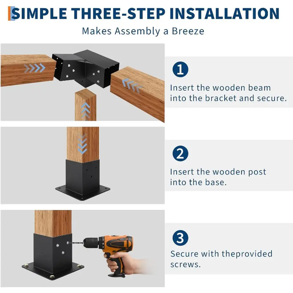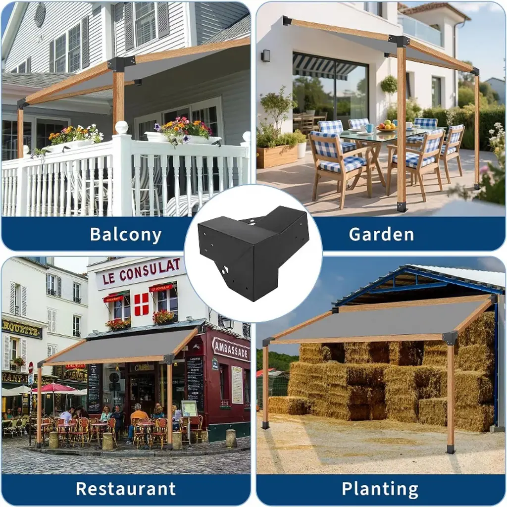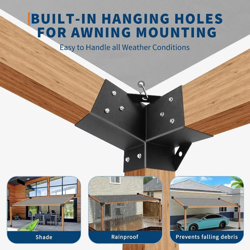 Pergola Bracket Kit,15° Angled Roof Brackets For 4X4 Lumber,3-way Metal Connectors For Diy Pergola,gazebo & Carport