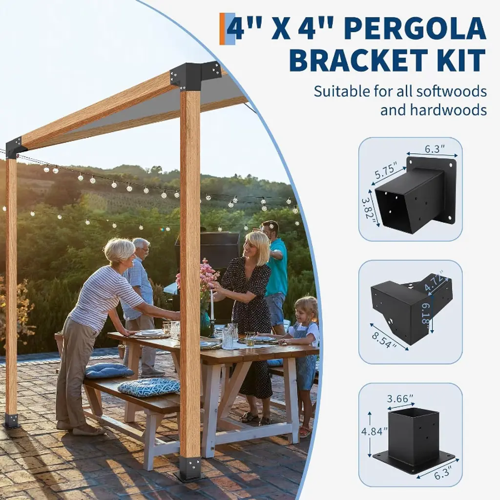 Pergola Bracket Kit ,15° Angled Roof Brackets for 4x4 Lumber,3-Way Metal Connectors for DIY Pergola, Gazebo & Carport