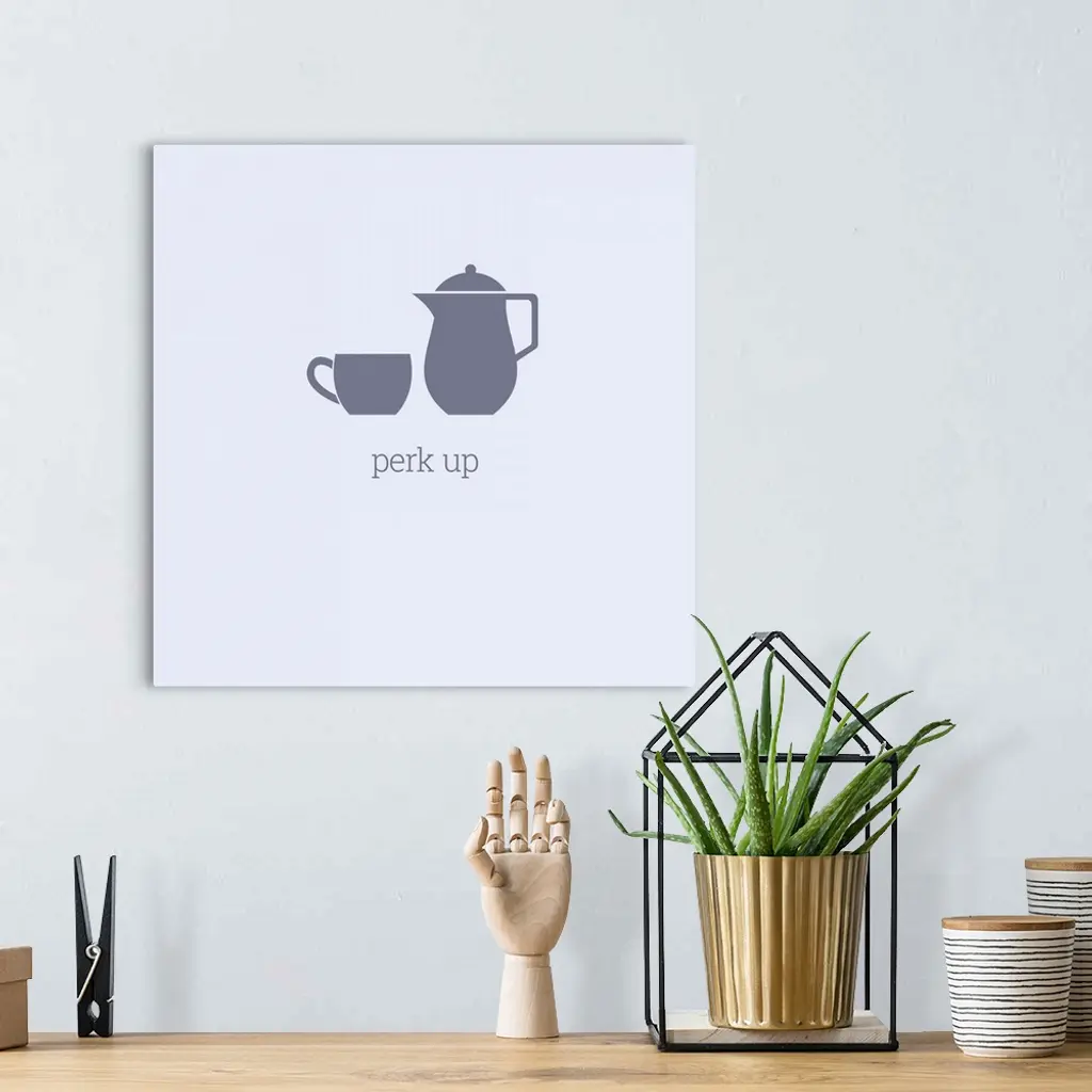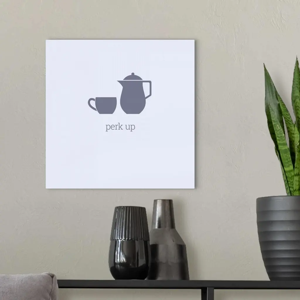 Minimalist kitchen art with a retro vibe, combining everyday phrases with kitchen tools and food.
