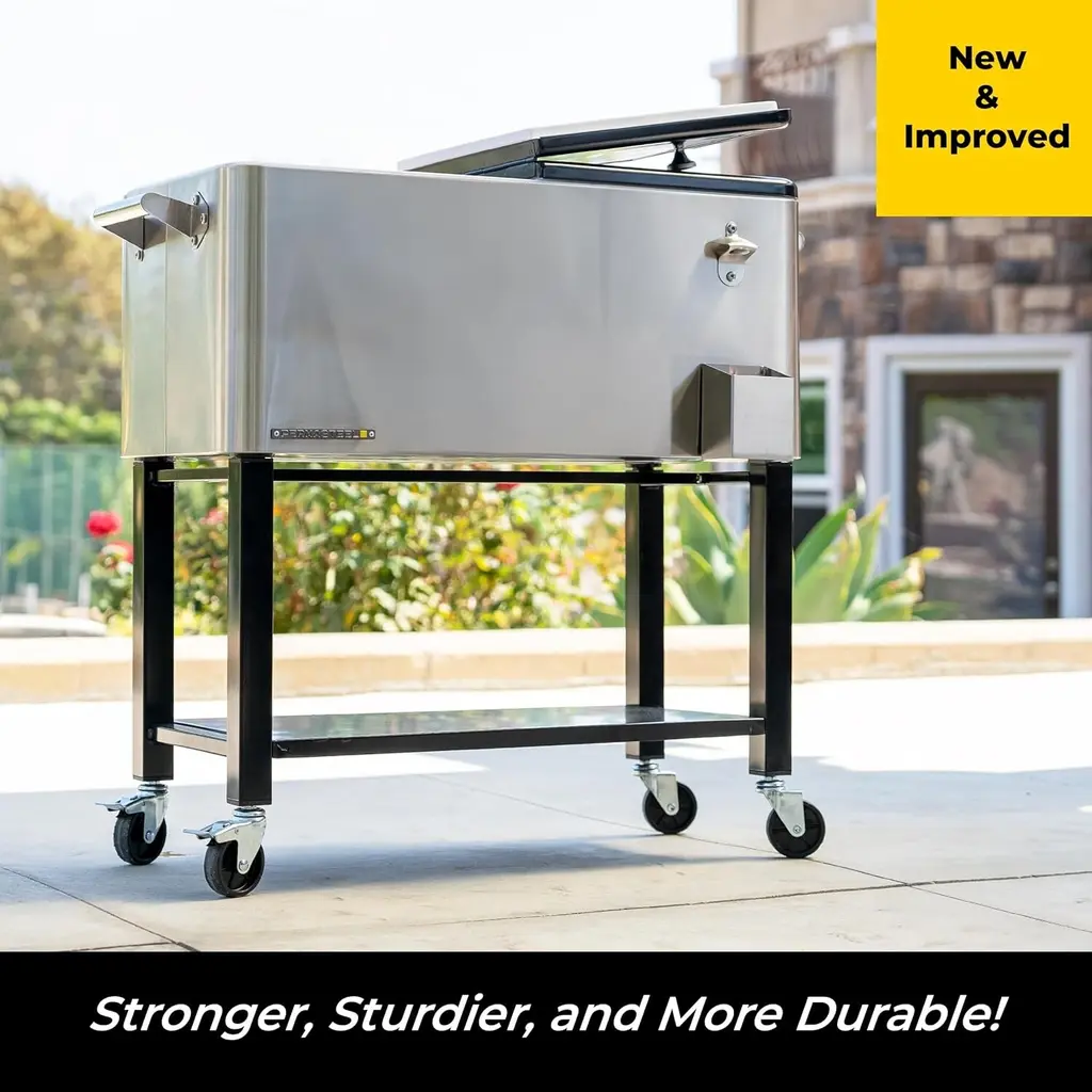 Looking for the perfect way to keep food and drinks cold and ready for your next big gathering, social activity, or adventure? Look no further than the Permasteel 80-Quart Rolling Patio Cooler with Removable Basin! This cooler is the ideal solution to chill out your summer days in style. With a large 80-quart storage capacity, spacious dimensions, and well-crafted construction, it's an excellent companion on all of your trips, whether you're headed to the beach, park, picnic, or an outdoor party. And since it's easy to use and wheel around, you can take it pretty much anywhere life takes you!