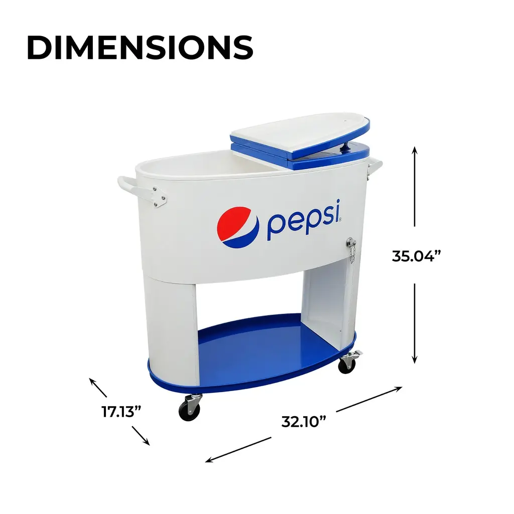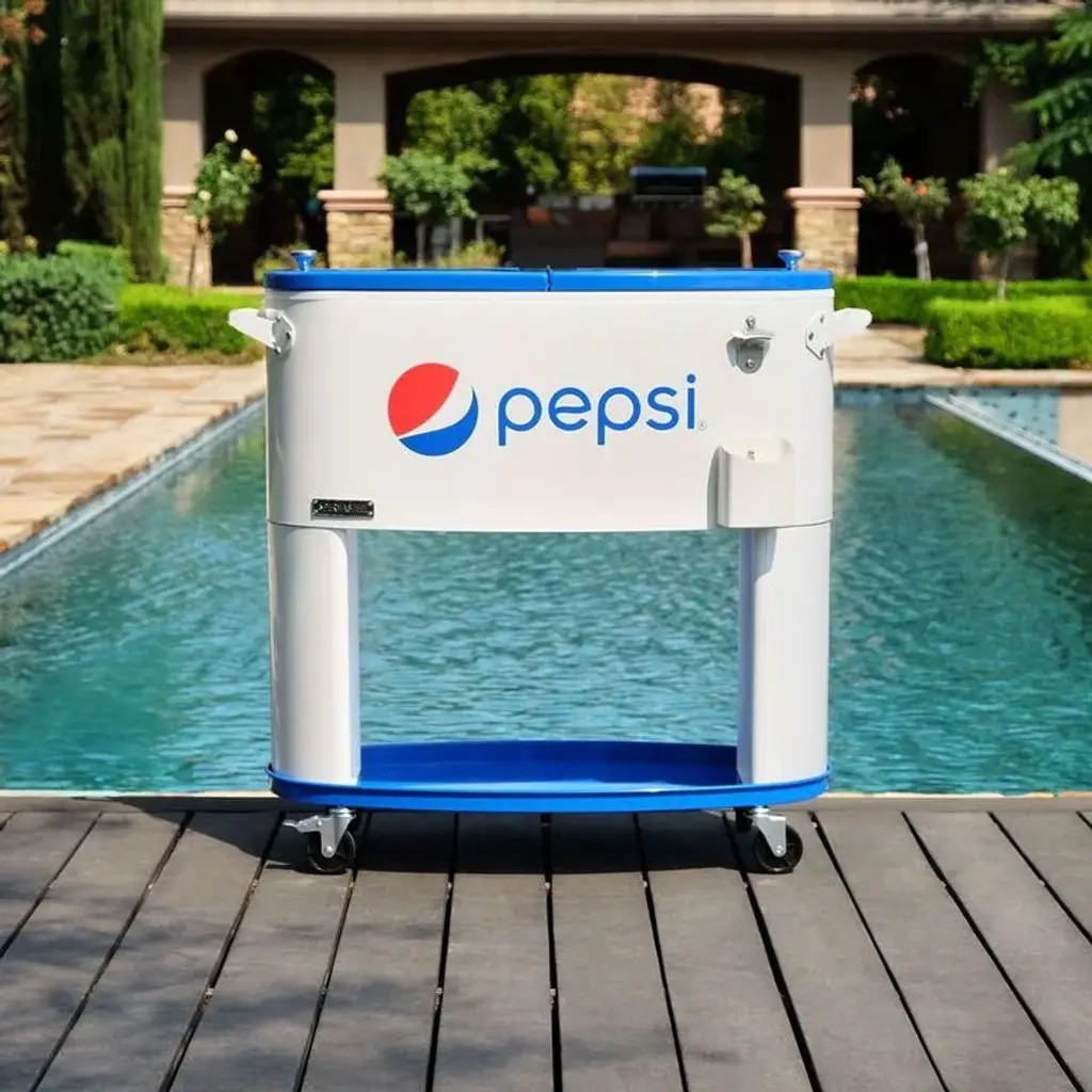 Permasteel 80-Qt Sporty Oval Rolling Patio Cooler Cart With Pepsi Logo - White