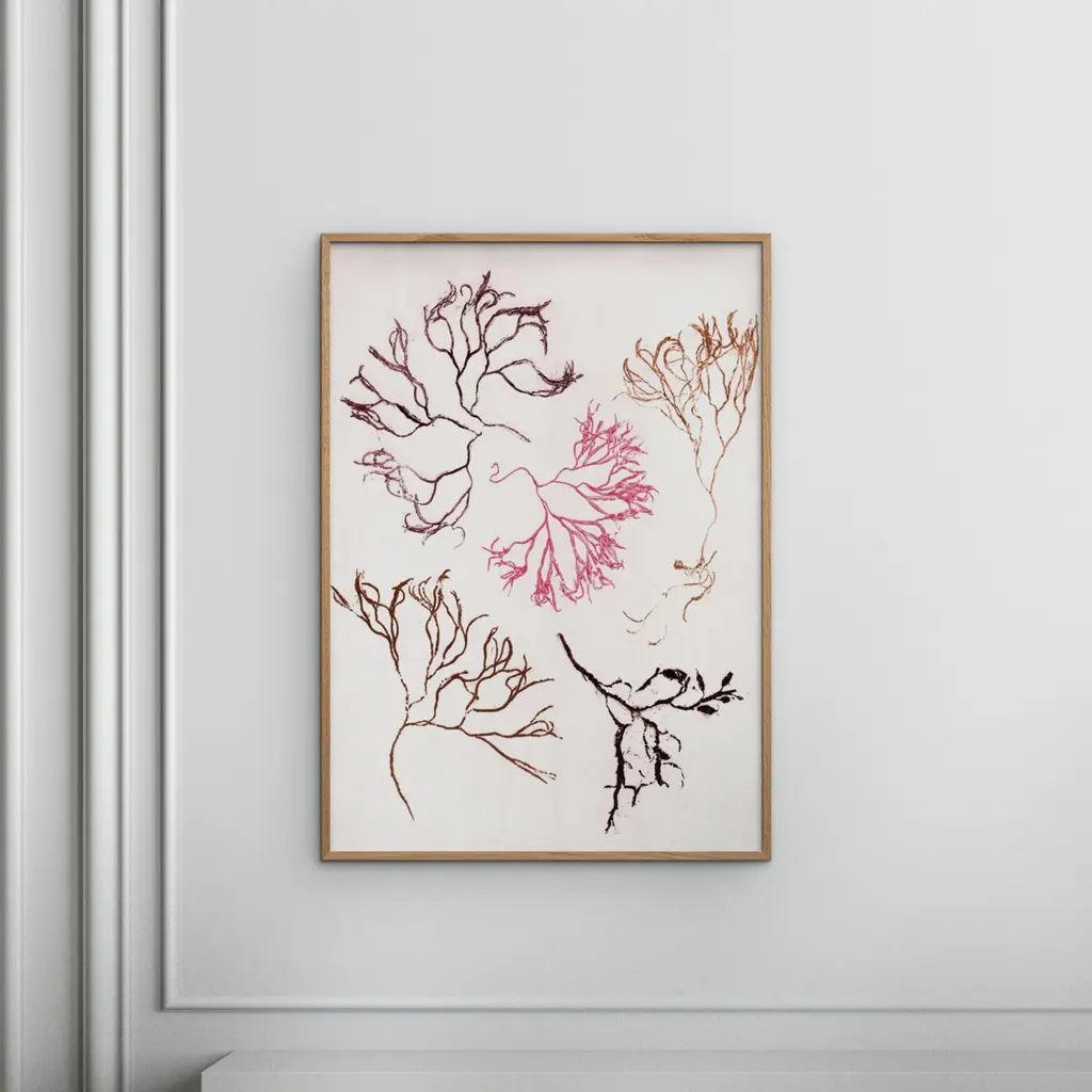 Discover “Algae Multi” by Pernille Folcarelli. Featuring an array of organic forms in earthy hues, this minimalist piece highlights the natural beauty and diversity of plant life. An elegant addition to eclectic and bohemian spaces. Unframed. Available in three sizes.