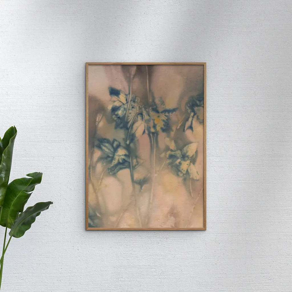 Soft and ethereal, Pernille Folcarelli’s “Columbine 1 Blue/Tan” captures nature’s fleeting beauty, evoking summer’s metamorphosis into fall with a blurred background and glowing, golden tones. The gentle hues invite the viewer to pause and appreciate nature’s quiet elegance, offering a serene and contemplative visual experience. Unframed. Available in two sizes.