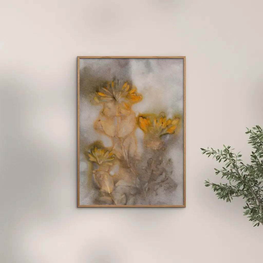 Discover “Honeysuckle 1 Saffron/Taupe” by Pernille Folcarelli. Featuring warm, golden tones and a softly blurred background, this beautiful piece captures the serenity of nature in bloom. The gentle interplay of light and shadow adds a layer of depth, inviting viewers to immerse themselves in the tranquility of nature's golden moments. Unframed. Choose from two sizes.