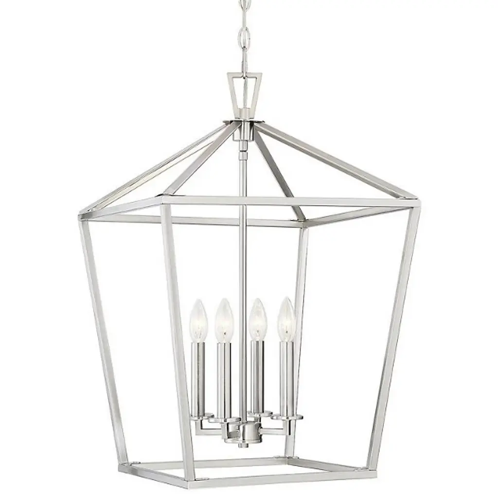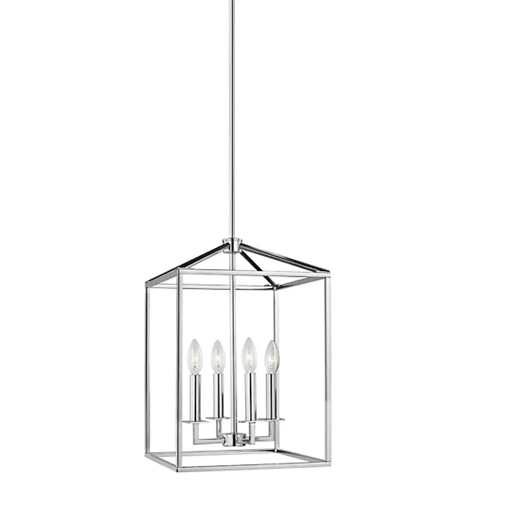Inspired by stately, carriage lanterns, the Perryton Two-Tier Foyer Pendant by Generation Lighting, formerly known as Sea Gull Lighting, brings an alluring ambiance to your home décor. Its open frame, formed by square steel tubing, is constructed around two inner candelabras with exposed lamping. When on, its warm light radiates off the frame and into the surrounding space for an illumination that is both pleasant and useful.