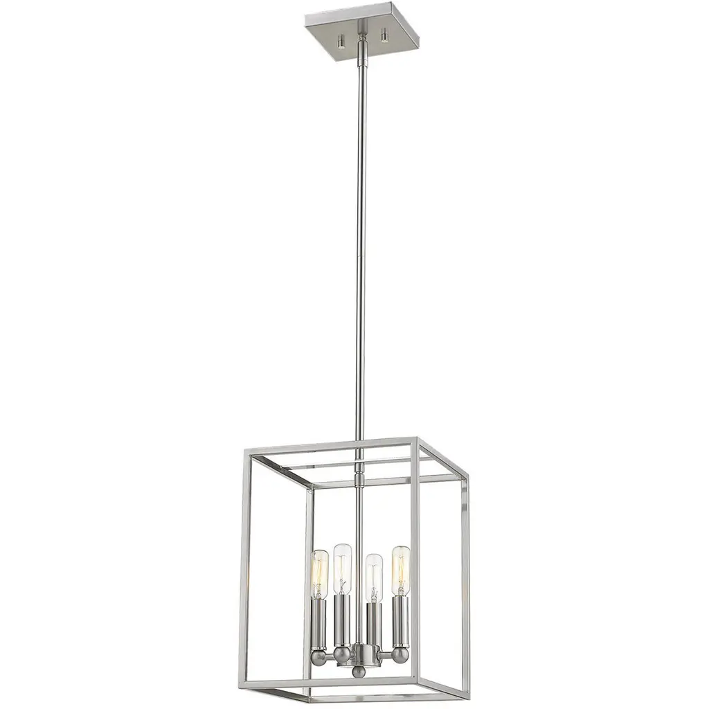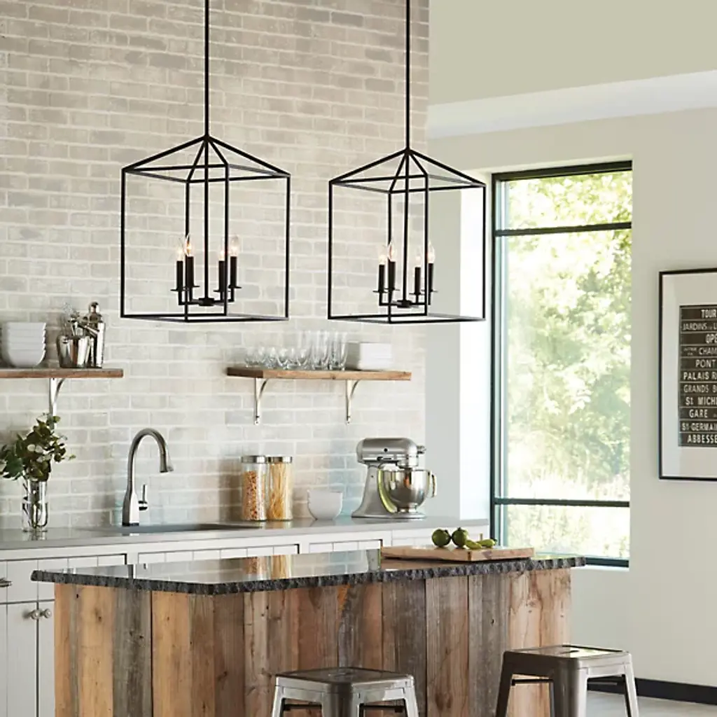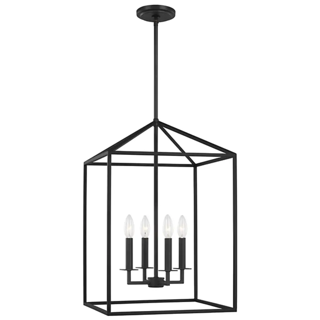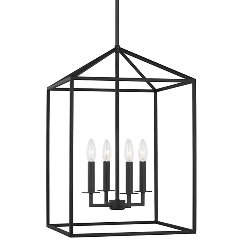 Inspired by stately, carriage lanterns, the Perryton Foyer Pendant by Generation Lighting, formerly known as Sea Gull Lighting, brings an alluring ambiance to your home décor. Its open frame, formed by square steel tubing, is constructed around an inner candelabra with exposed lamping. When on, its warm light radiates off the frame and into the surrounding space for an illumination that is both pleasant and useful.