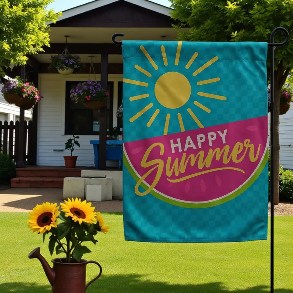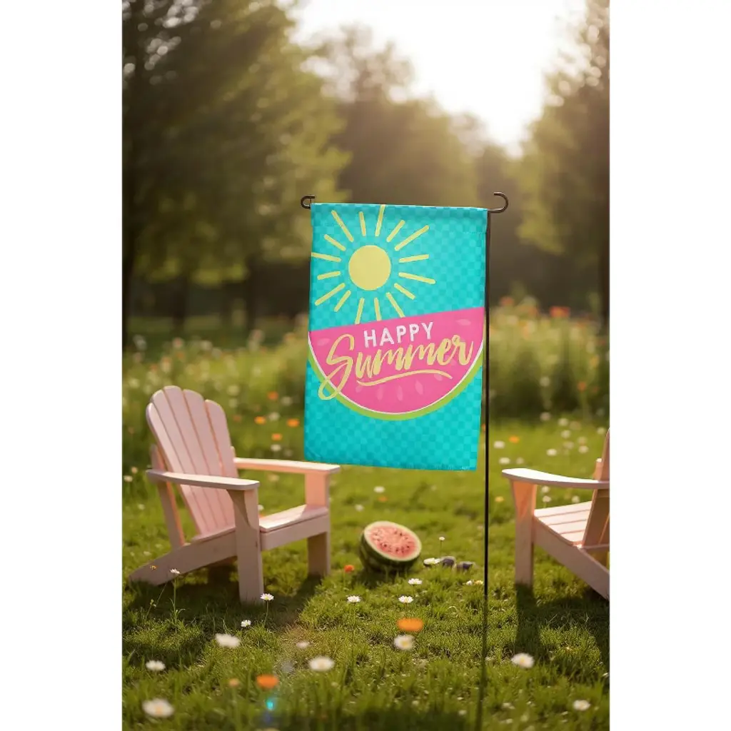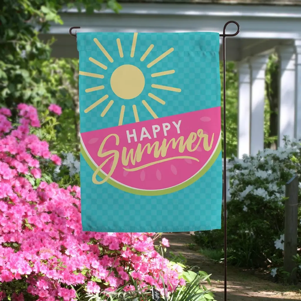 Celebrate the vibrant spirit of the season with the Simply Summer Personalized Garden Flag. Designed to add a touch of charm to any outdoor space, this delightful flag showcases a cheerful summer motif, making it a perfect accent for your garden or patio. Crafted from durable 100% polyester, it ensures long-lasting beauty and resilience against the elements. Measuring 17.25 inches in length and 12.5 inches in width, this double-sided flag offers versatile display options, allowing you to enjoy its delightful design from any angle. Personalize your outdoor décor with this unique garden flag and choose to pair it with our optional garden flag stand, sold separately, for the complete look. Embrace the joy of summer and let your yard shine with individuality and warmth.