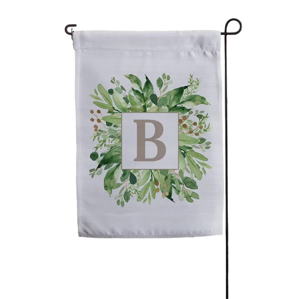 Welcome guests to your home with the Spring Greenery Initial Garden Flag. With a watercolor design, this floral design will add a pop of color to your home. Add a personalized touch with your first or last initial, centered in the greenery. Add this small garden flag to your outdoor home decor for a fun spring and summer decoration, or gift to new homeowners to celebrate their milestone.