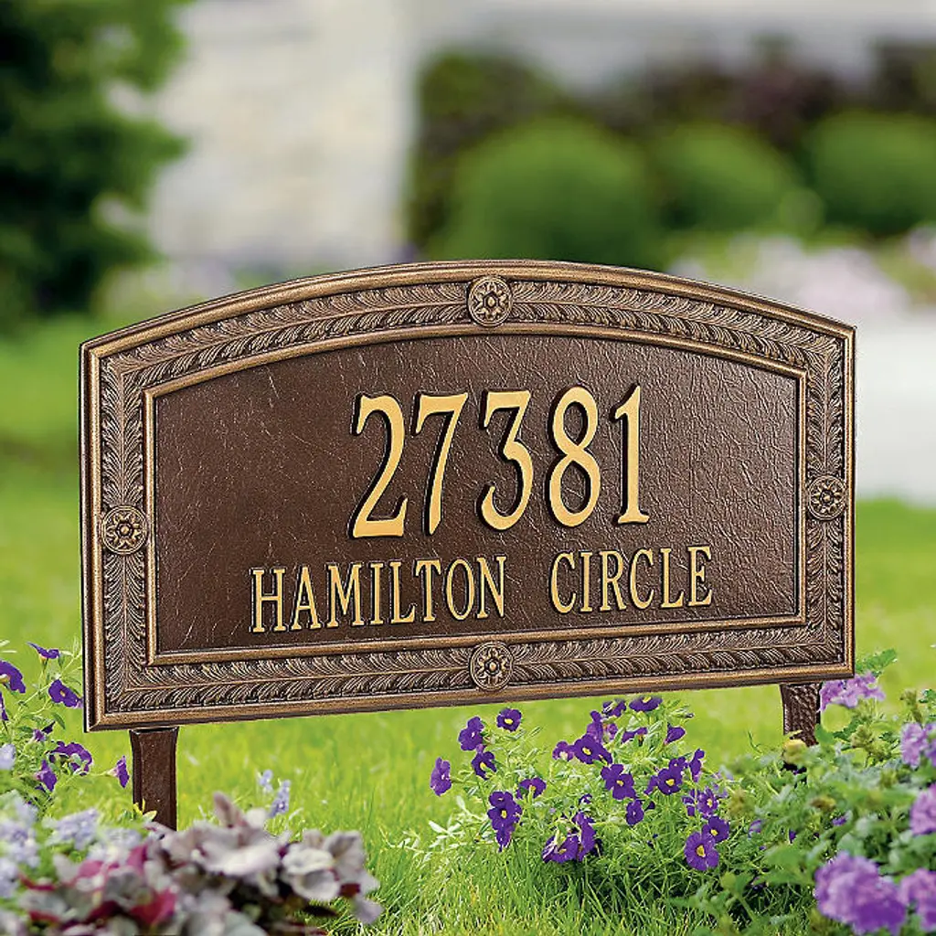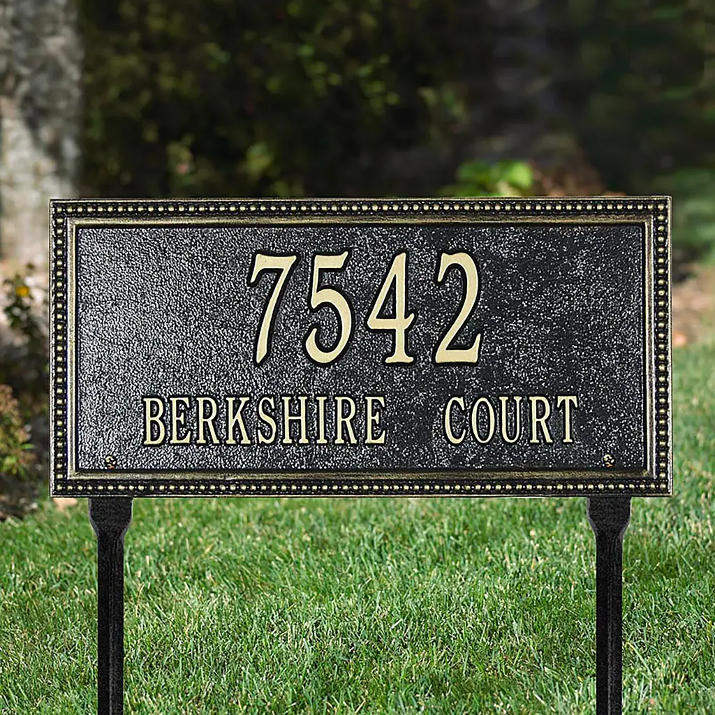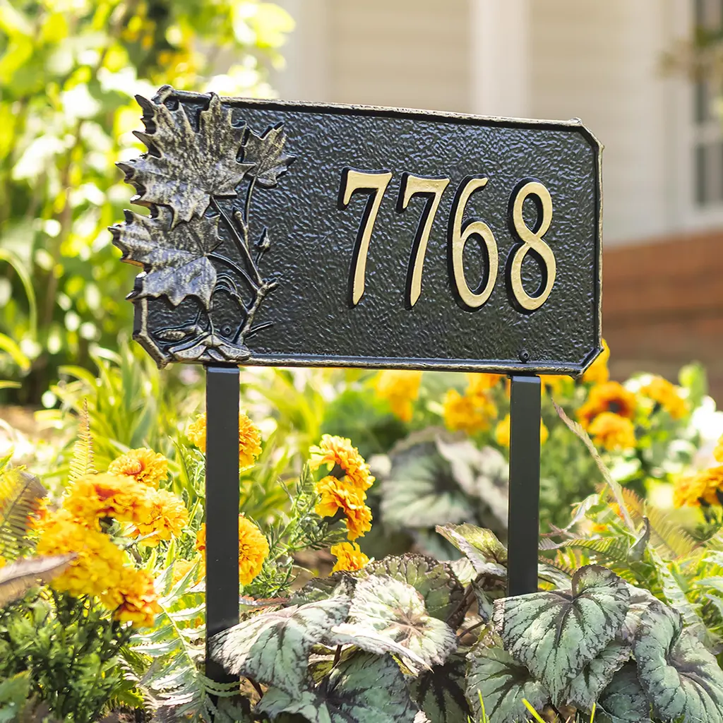 Our Personalized Pineapple Address Plaque Lawn Stake uses the traditional symbol for hospitality to welcome family and friends to your home.Custom-made in the USA from recycled cast aluminum, our lawn stake features raised metallic characters and designs set against the background color of your choice. The high-quality powder-coat finish provides protection from the weather in all seasons. Perfect as a thoughtful and personalized wedding, housewarming or anniversary gift!Easy set-up; just use the back tabs to mount the plaque onto the two included 18" stakes.