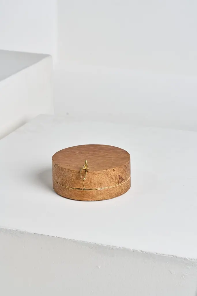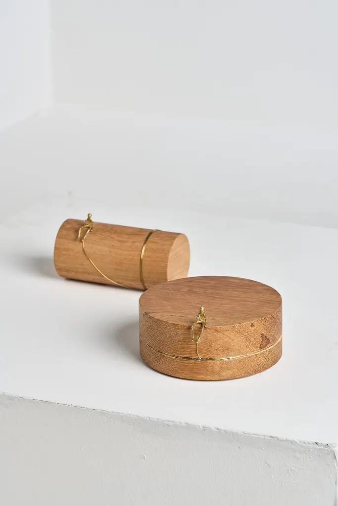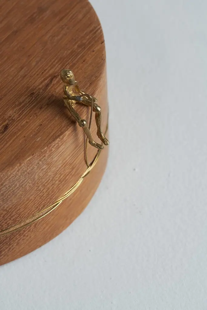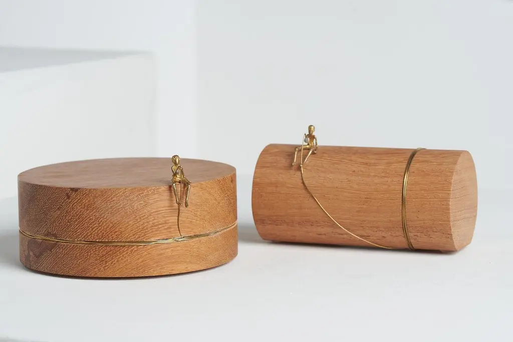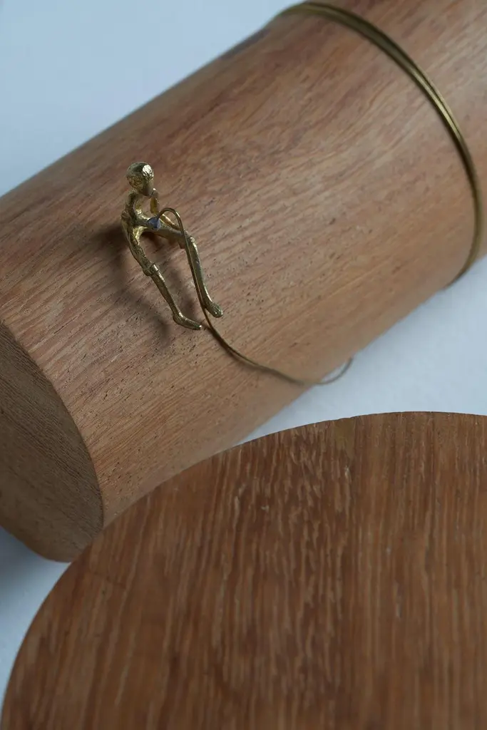 PESCADOR (FISHERMAN) SERIESFrom so many fish, emerges the need to pursue the new. Again. And again. The Pescador Series contemplates the private hook, which drifts and feeds on chance.Its images carry as many meanings as the uncertainties of those who dare to sail. Open sea, flowing river, fisherman of illusions. For the environments, the deck that suits the best. For the reader, the silent wait for the waiting to make sense.N9 Sculpture (Circular) D15cm x 9cmN10 Sculpture (Sideways) D6,5cm x 15cm_Material: Wood and Brass_Price of set