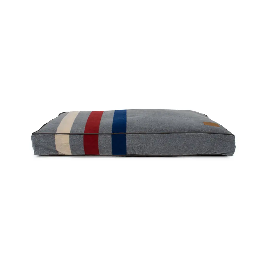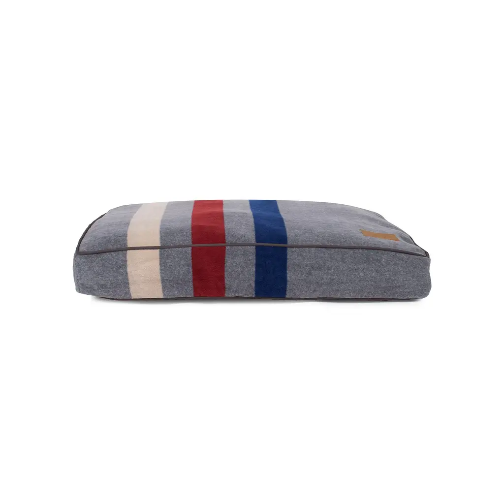 Escape to cabin life with the Pet Napper from Pendleton Pets. This cozy pet bed boasts bold stripes on a neutral background to add a touch of nostalgia. Overstuffed with recycled polyester fill, it features a channel design to keep the fill in place. And with a zip-off, machine washable cover, it's easy to keep clean. Available in various sizes to fit your furry friend. Highlights