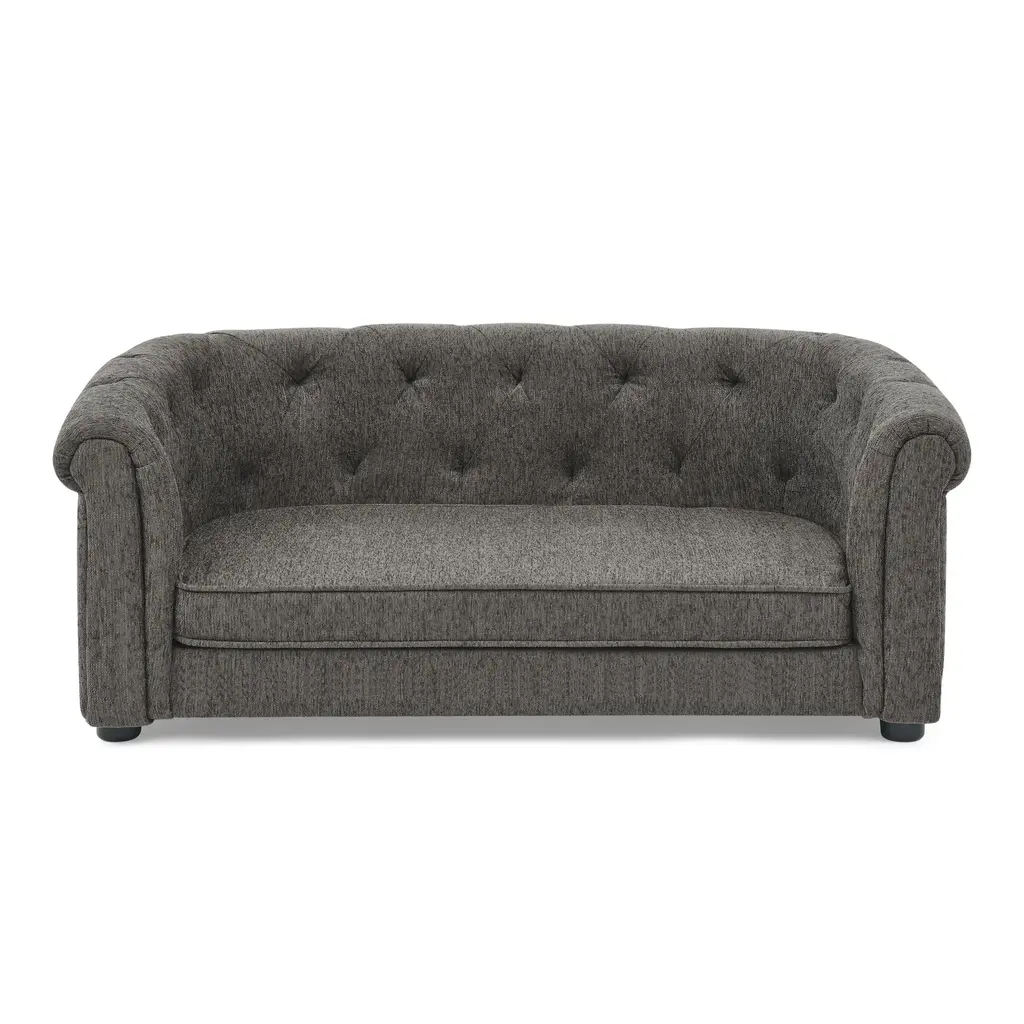 Warm tips: Product after-sales guide 🚀Thank you for purchasing our products!Please do not return the product in case of problems. Please take a photo and send it to us, we will quickly process and provide a reasonable solution. Thank you for your cooperation! 🙏Appearance design:The button - tufted design on the back of the sofa not only looks stylish but also adds to the overall durability of the piece. It gives the sofa a classic, sophisticated look that will blend seamlessly with any home decor, making it a functional and decorative addition to your living space.Cute and Comfortable Pet Furniture: The curved armrests and backrest of this sofa are designed for the comfort of your pet. The gentle curves provide excellent support for pets' bodies, whether they are lazily lying down, napping, or just relaxing.Durability Meets Comfort:The sofa is upholstered in high - quality linen fabric. Linen is renowned for its breathability, ensuring your pet stays cool even on warm days. It's also incredibly durable, able to withstand the claws and antics of your active pet, making it a long - lasting addition to your home.Durable and easy to clean: The high quality fabric allows for quick and easy on-site cleaning with the use of cleaning agents; Thick and comfortable padding for extra comfort for your petGive your pet the gift of comfort and style with our unique pet sofa. It's more than just a piece of furniture; it's a place where your pet can relax and feel at home.Dimensions & WeightDimension38"*22"*15"Detail DimensionPlease refer to the image.ColorDark greyStyleModernTarget Audience KeyworddogsSpecific Uses for ProductPet BedBreed RecommendationMedium, Large