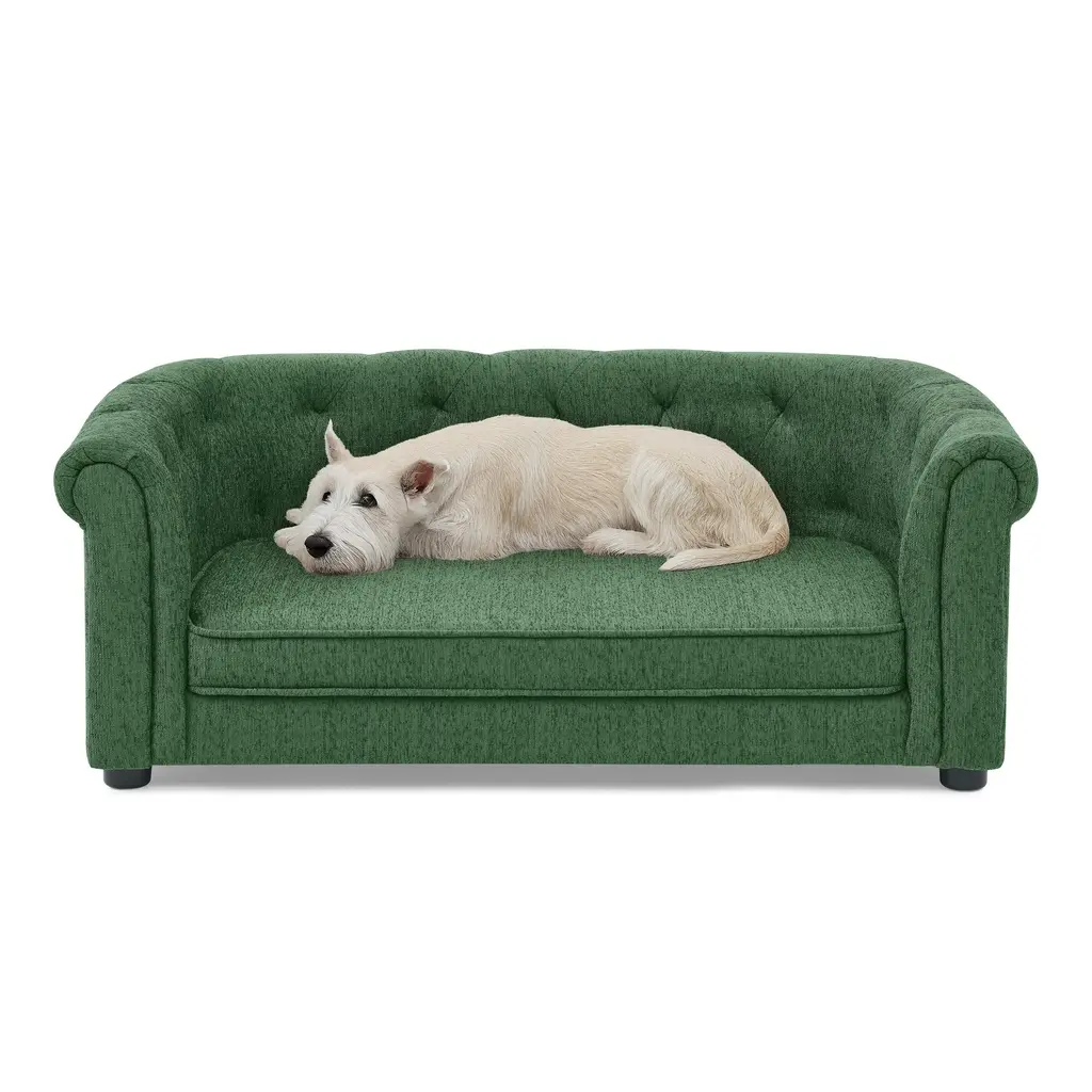 Pet Sofa With Arc-Shaped Backrest And Armrests, Contemporary Rectangular Pet Sofa Crafted From Breathable Linen - Green