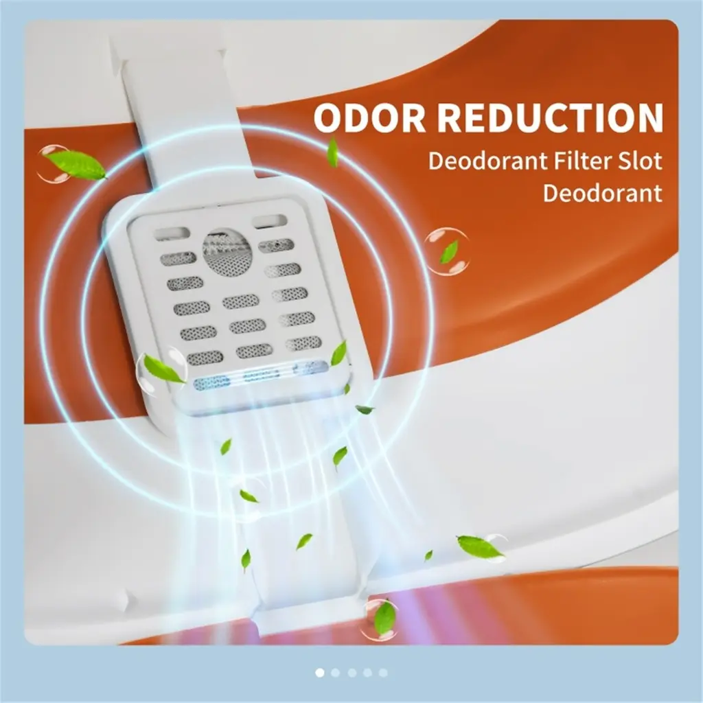 Specification: Key Features:Description:The Pet Stairs and Cat Climbing Tower provides a convenient and comfortable space for your pets to climb, relax, and maintain privacy. Available in White-Grey, Black-White, and Orange-White, it features a sturdy design made from polypropylene and ABS materials. Measuring 20.5" L x 16.25" W x 15" H, it offers easy access with a spacious interior (14.25" H x 17" L x 12.5" W) and a 7.75" diameter front door. It includes a litter grate to prevent tracking, a litter scoop for easy cleaning, and a built-in air freshener to keep odors at bay. The foldable design (5.75" H x 20.5" L x 16.25" W) allows for compact storage, while the top lid with a high edge design helps contain litter. Perfect for both cats and small pets, this practical and easy-to-clean unit is ideal for any home.