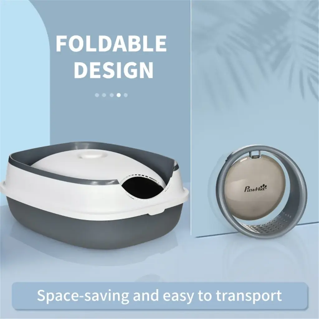 Specification: Key Features:Description:The Pet Stairs and Cat Climbing Tower provides a convenient and comfortable space for your pets to climb, relax, and maintain privacy. Available in White-Grey, Black-White, and Orange-White, it features a sturdy design made from polypropylene and ABS materials. Measuring 20.5" L x 16.25" W x 15" H, it offers easy access with a spacious interior (14.25" H x 17" L x 12.5" W) and a 7.75" diameter front door. It includes a litter grate to prevent tracking, a litter scoop for easy cleaning, and a built-in air freshener to keep odors at bay. The foldable design (5.75" H x 20.5" L x 16.25" W) allows for compact storage, while the top lid with a high edge design helps contain litter. Perfect for both cats and small pets, this practical and easy-to-clean unit is ideal for any home.