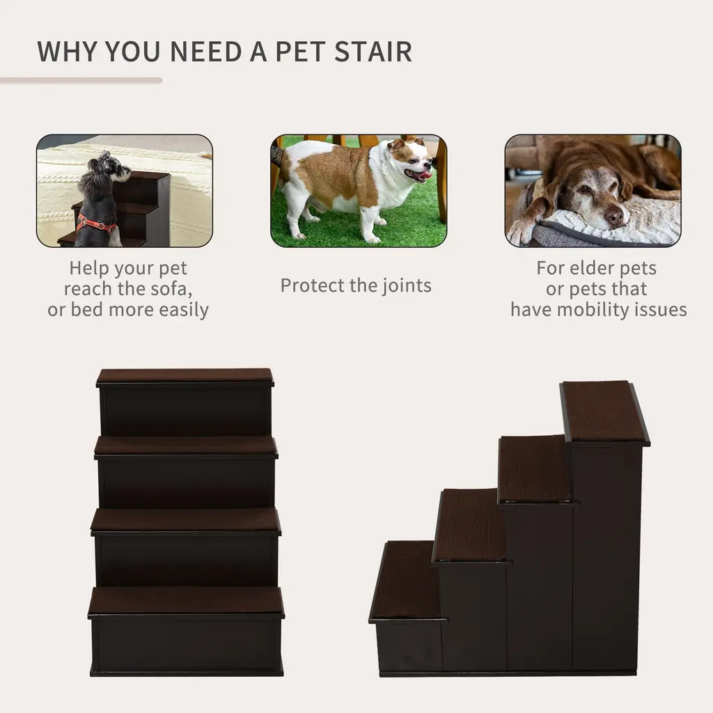 Pet Stairs Small Four Step Pet Steps With Cushioned Removable Covering For Dogs And Cats Up To Twenty-Two Lbs - Brown
