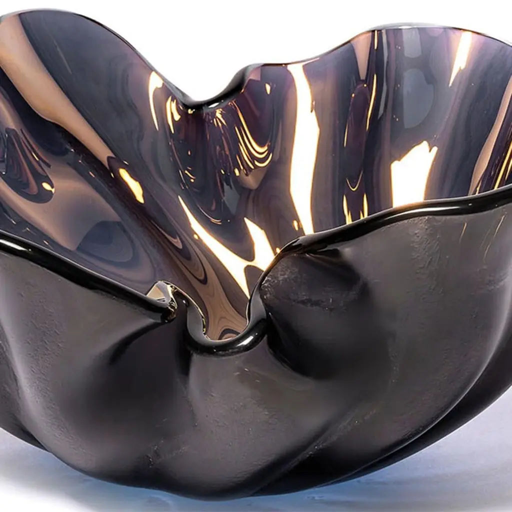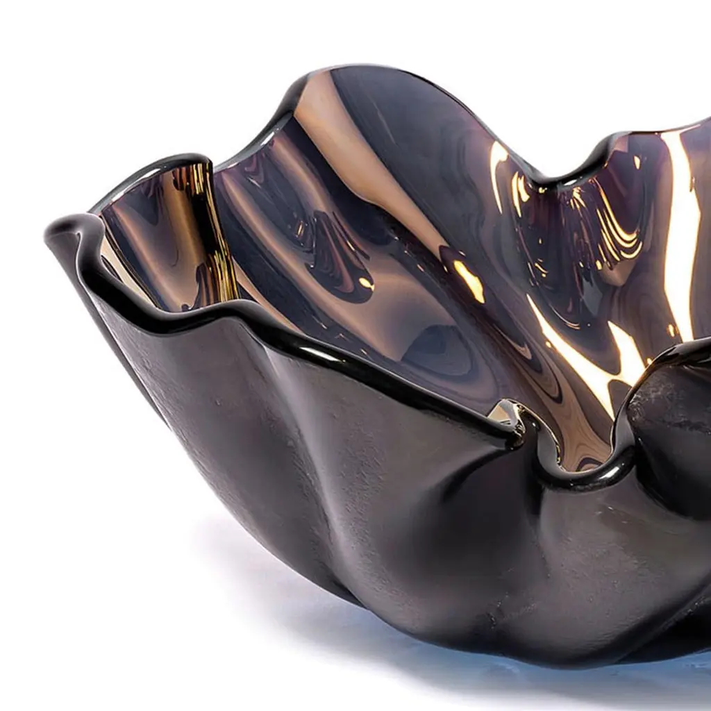 Bowl petal bronze shiny glass all in blown glass withbronze shiny finish inside, with blackened glass finishoutside. Hand-crafted piece, each piece is unique.