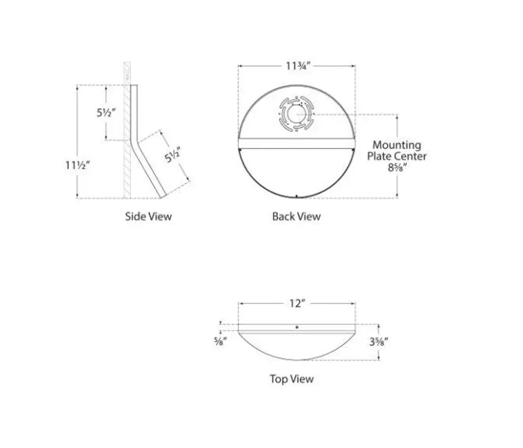 Bend Large Round Light in White Designer: Peter Bristol Height: 11.5" Extension: 3.75" Backplate: 5.5" x 11.75" Oval Mounting: Hardwire Socket: Dedicated LED Wattage: 20w (1600lm) Safety Rating Location: WET