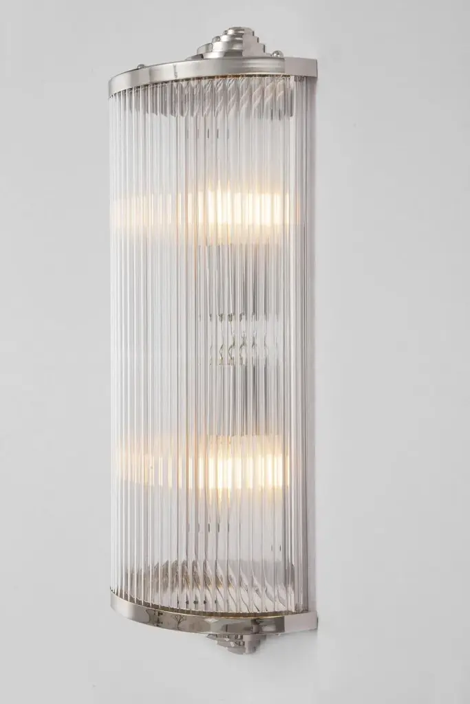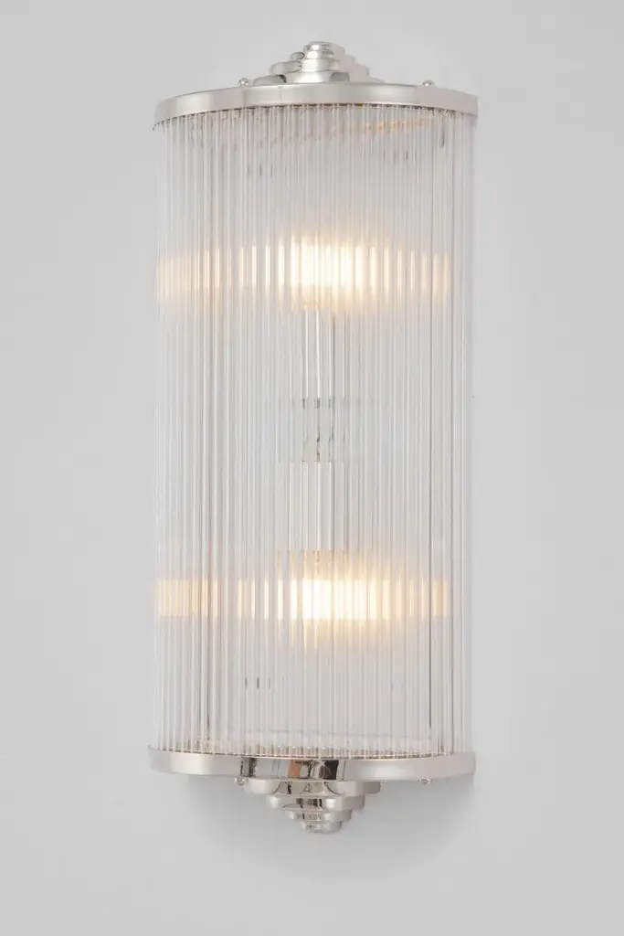 Petitot V is a wall lamp made of brass available in different finishes.Finishes: Antique, Shiny brass, Matt brass, Shiny nickel, Matt nickelCapacity : 2x60 W E14This collection is our largest one, showcasing finest French art deco be it a chandelier, wall light, pendant, ceiling fitting, table lamp or floor light. This is where almost unadorned brass, frosted glass plate and fixed tubes made of crystal meet, resulting in lavish and impressive lighting. The collection is inspired by French designer Petitot.
