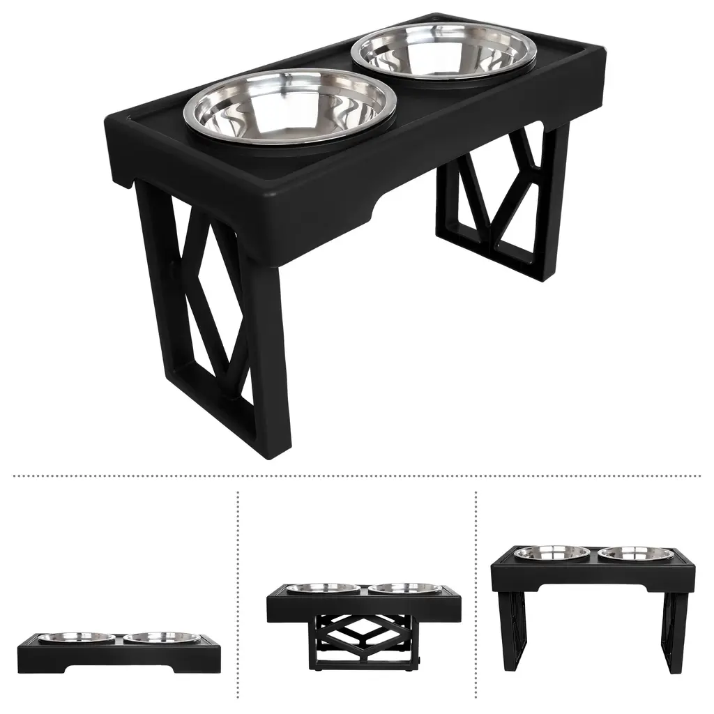 Petmaker Elevated Dog Bowl Stand - Adjustable Stand And Dog Bowls - Black
