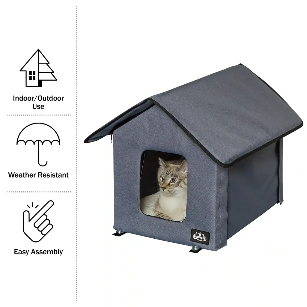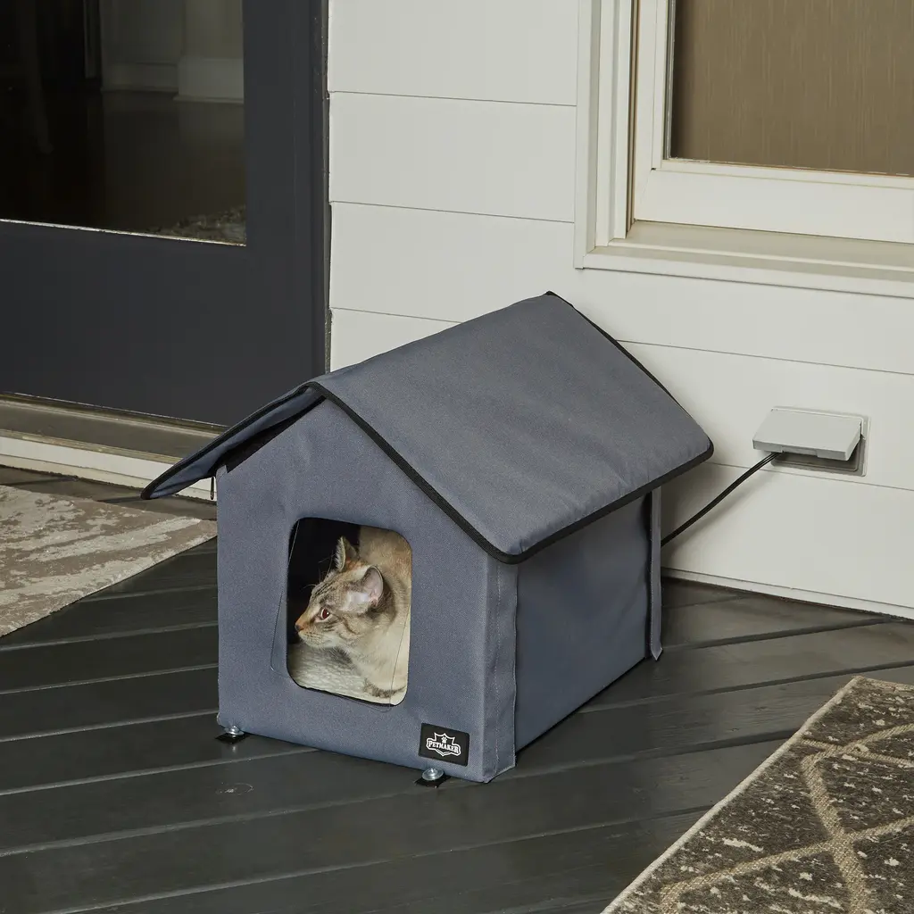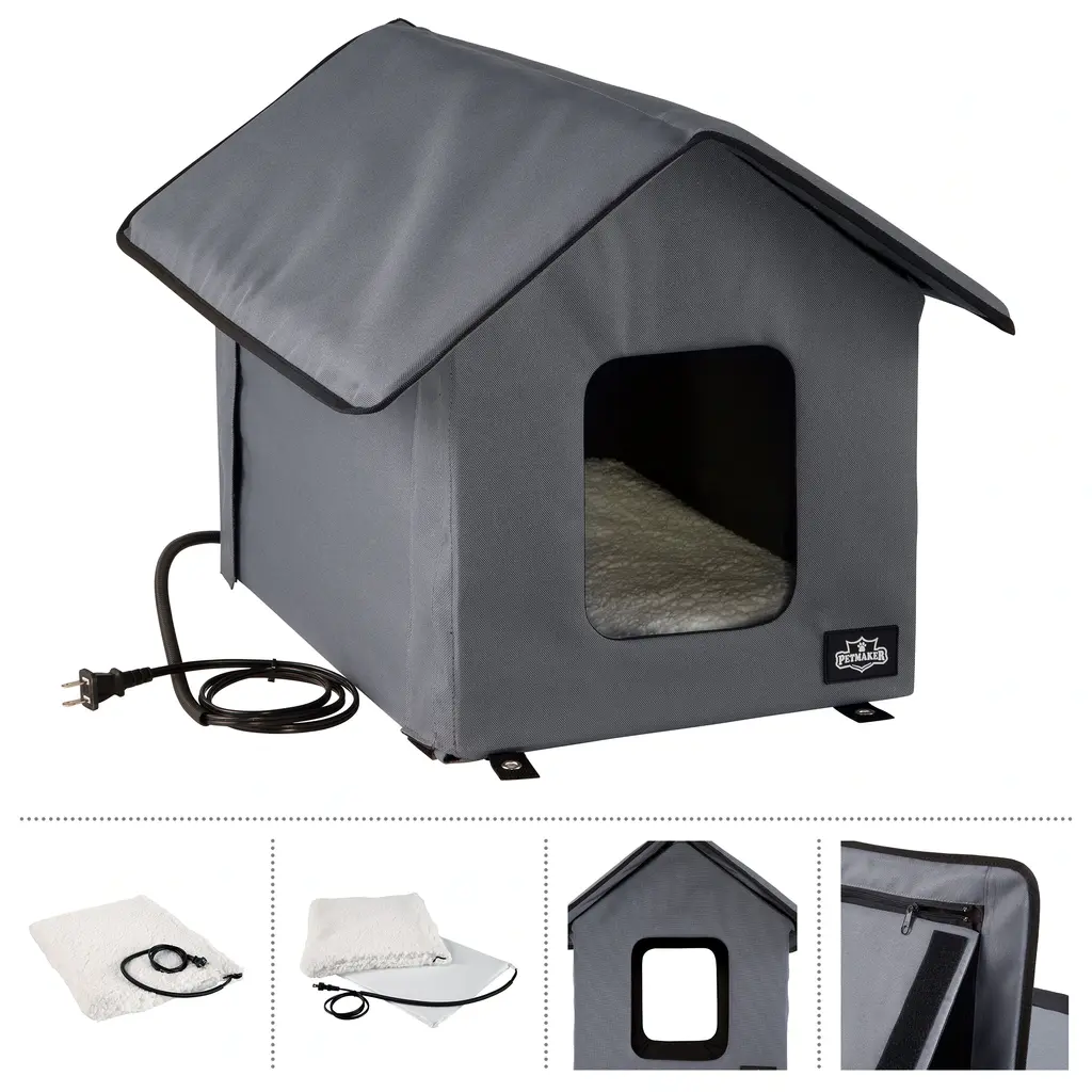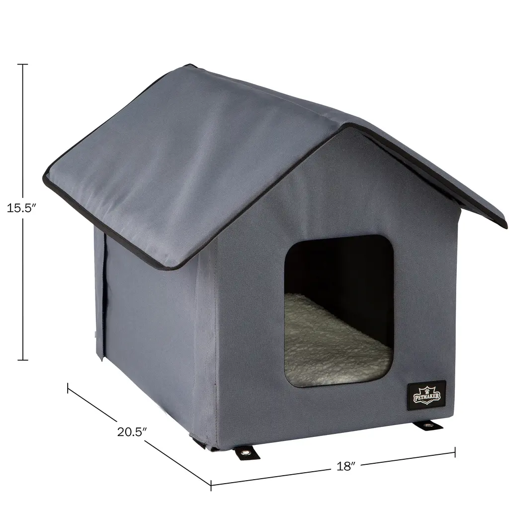 Petmaker Heated Cat House With Heating Pad And Sherpa Cover - Gray