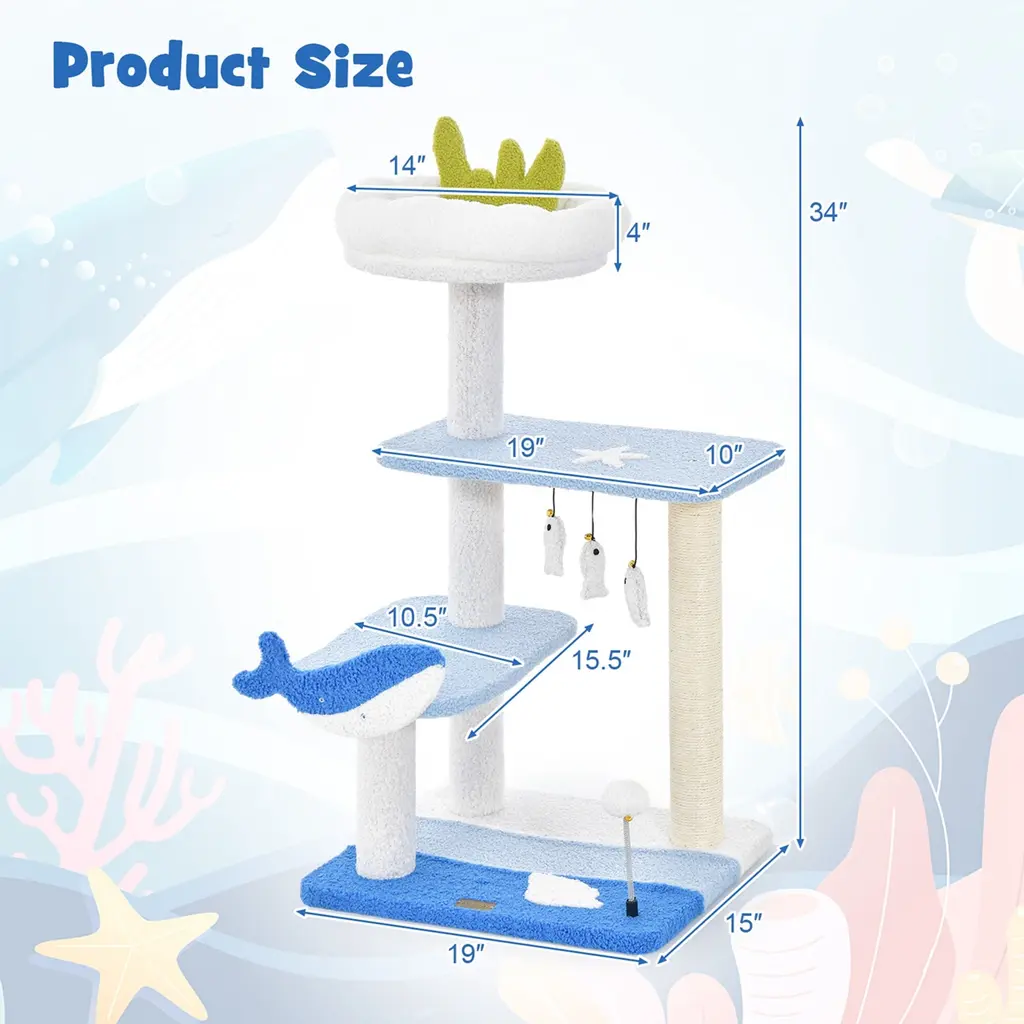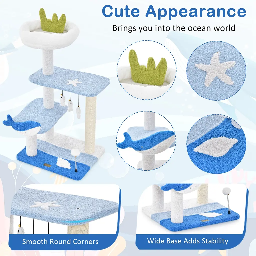 Petsite Ocean-Themed Cat Tree With Sisal Covered Scratching Posts - See Details - Blue - See Details