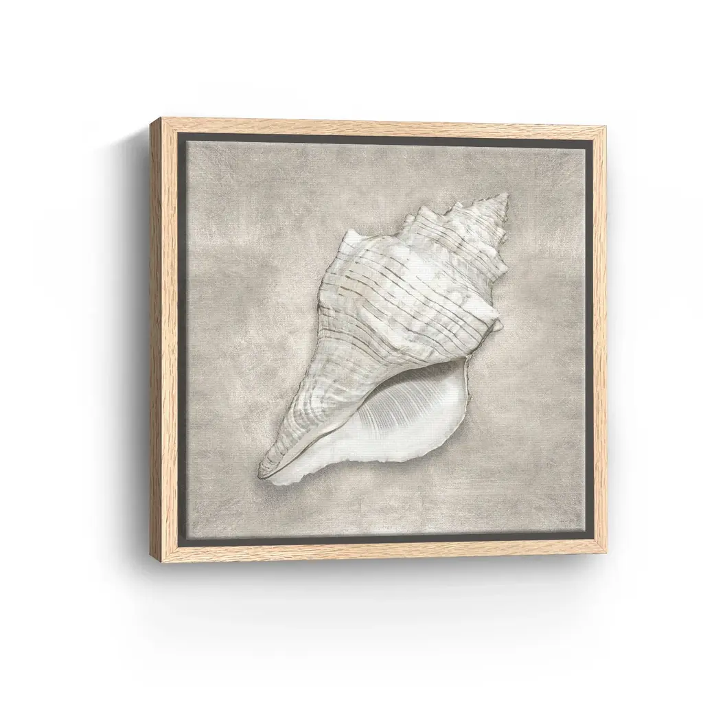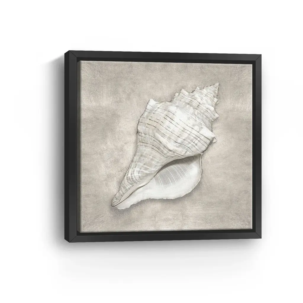 Bring the beauty of the ocean into your home with this enchanting canvas art print, featuring an array of delicate sea shells that evoke the tranquility of coastal living. The soft, soothing colors and intricate details create a serene atmosphere, making it a perfect addition to any space.Available in black frame, dark walnut frame and oak frames, or as a frameless canvas. Our Gallery Wrap Canvas Prints are proudly assembled with high quality materials in California, USA. Each piece is printed on a thick, archival grade canvas using Giclee technology. It is then hand-stretched by our experienced artisans over solid pine bars, which will not warp over time. The final product is a piece personally crafted for you to confidently display on your wall. Care and Assembly: Ensure that the location of your piece has little to no exposure to heat, sunlight, and moisture. Wipe clean, only if needed. Each piece includes a sawtooth hanger to hang on your wall horizontally.