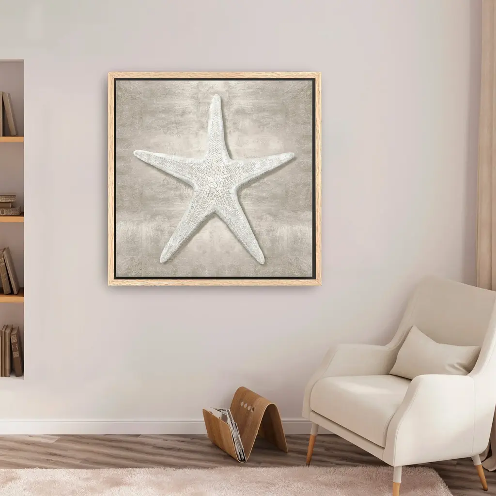 Pewter Seashells Iii Canvas Giclee - Framed / Oak / 40x40