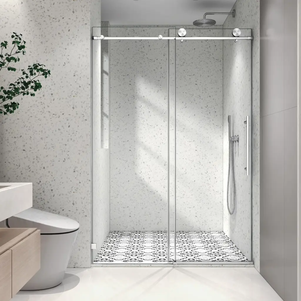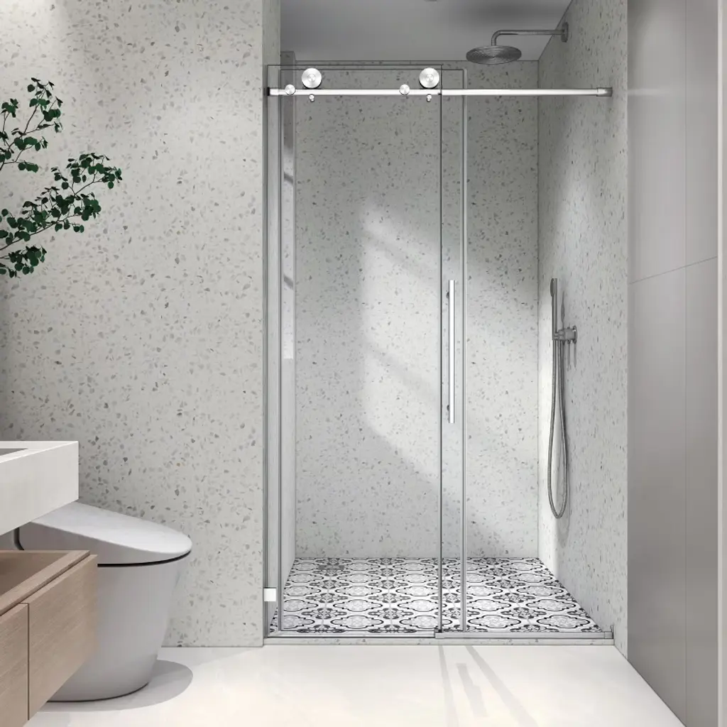 Experience spacious accessibility with this 76-inch frameless shower door, eliminating the need to bend while adding elegance, and featuring a 44-48-inch width adjustment for versatile installation. Premium durability comes standard through high-strength stainless steel hardware (48-hour salt-spray tested) and ultra-precise bearing rollers that ensure whisper-quiet, wobble-free sliding. Safety and longevity are guaranteed by 5/16" SGCC tempered glass with shatterproof film and advanced soft-close damping that prevents sudden movements and extends lifespan.
