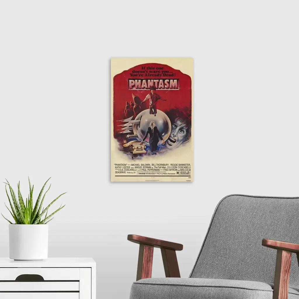 A small-budgeted, hallucinatory horror fantasy about two parentless brothers who discover weird goings-on at the local funeral parlor, including the infamous airborne, brain-chewing chrome ball. Creepy, unpredictable nightmare fashioned on a shoestring by young independent producer Coscarelli. Scenes were cut out of the original film to avoid X rating. Followed by Phantasm II.