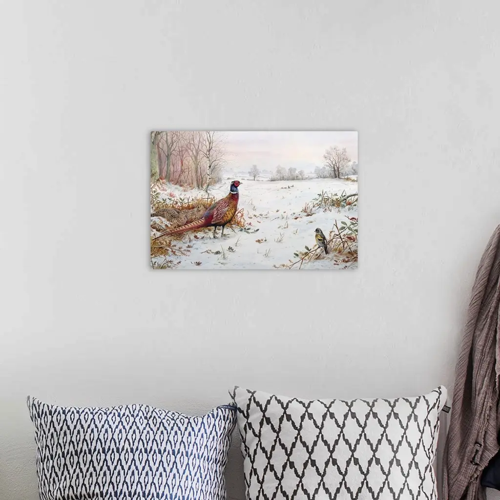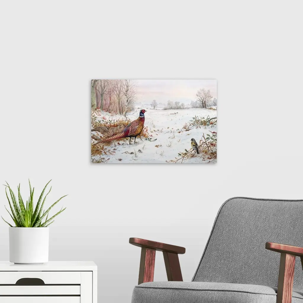 Pheasant and bramblefinch in the snow wall art for home and office decor. Discover canvas art prints, photos, mural, big canvas art and framed wall art in GreatBigCanvas.com's varied collections.