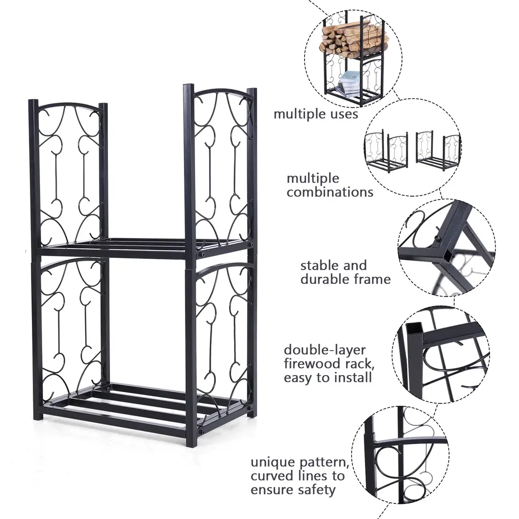 Phi Villa Double-Layer Firewood Rack With Iarge Storage Space