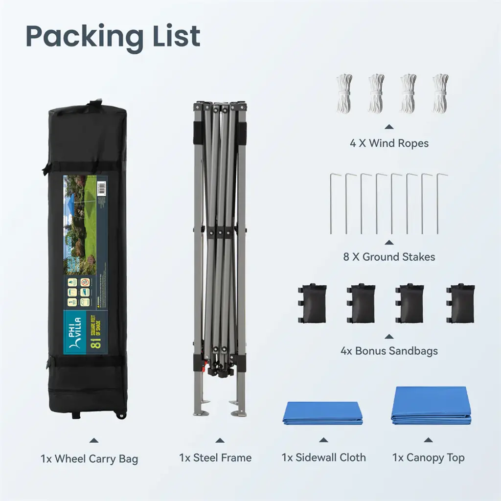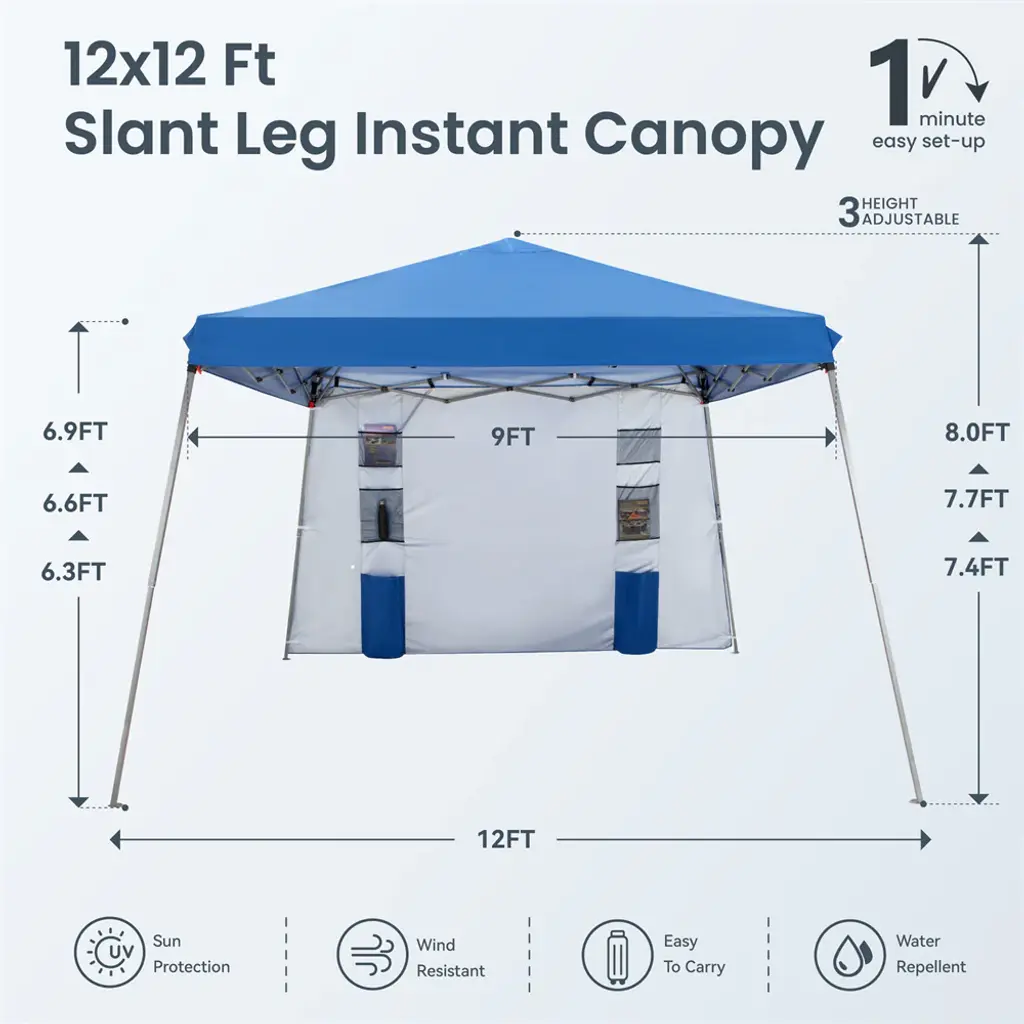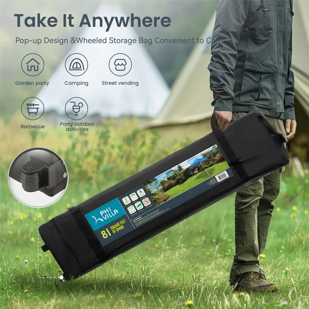 Phi Villa Slant Leg Pop-Up Instant Lightweight Canopy Gazebo