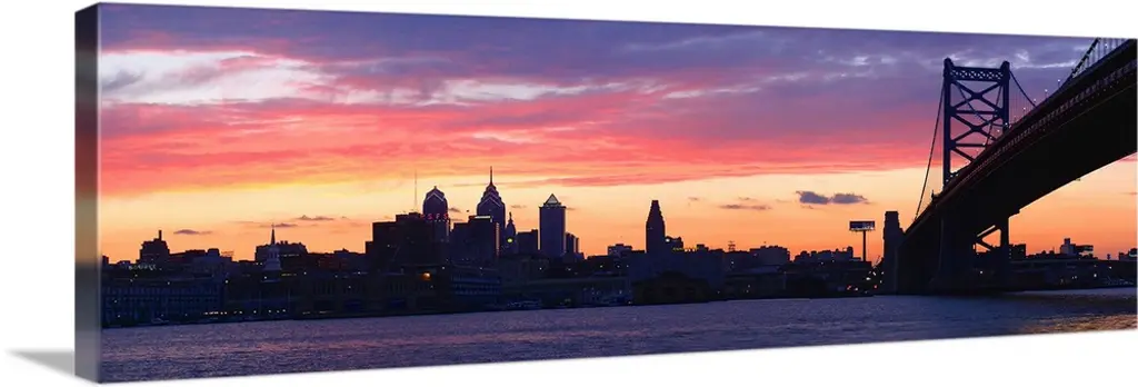 Philadelphia City Skyline At Night, Benjamin Franklin Bridge In Foreground