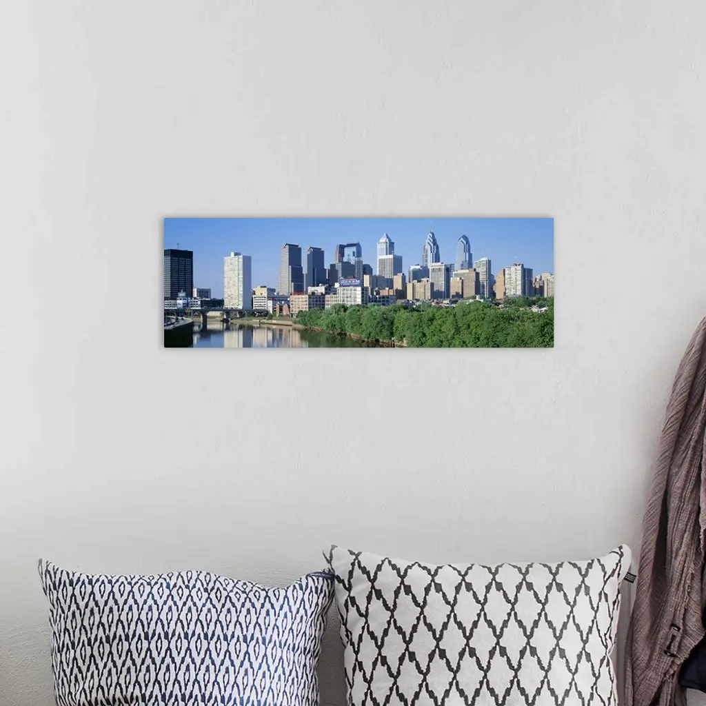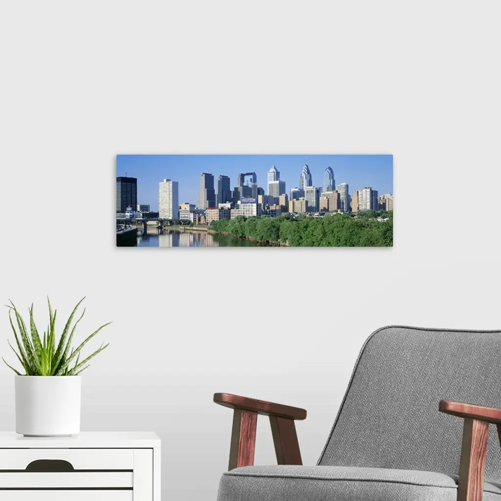 Panoramic photograph taken of downtown Philadelphia on a sunny day.