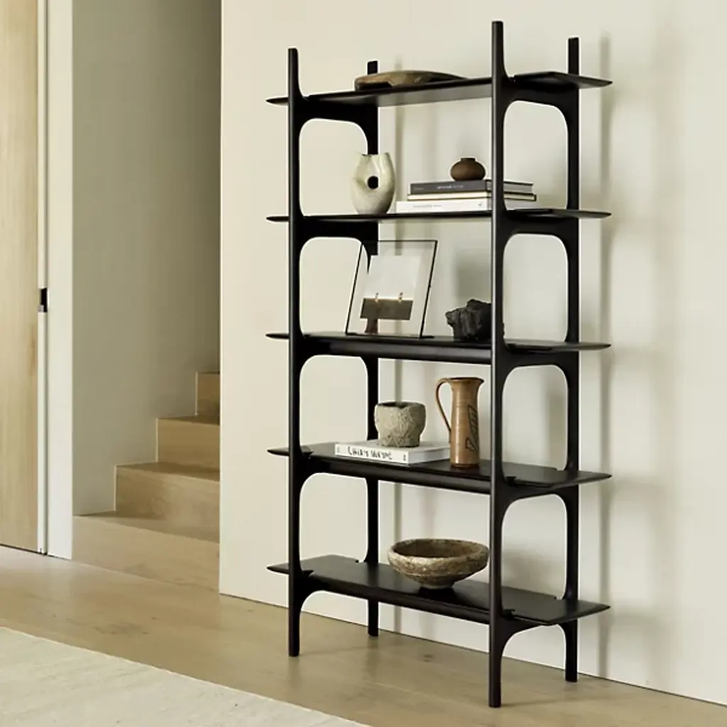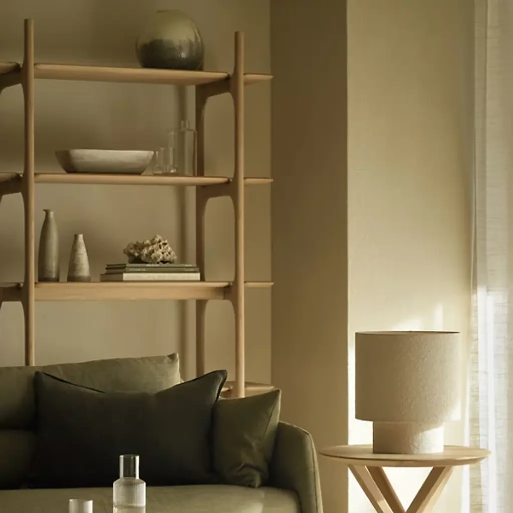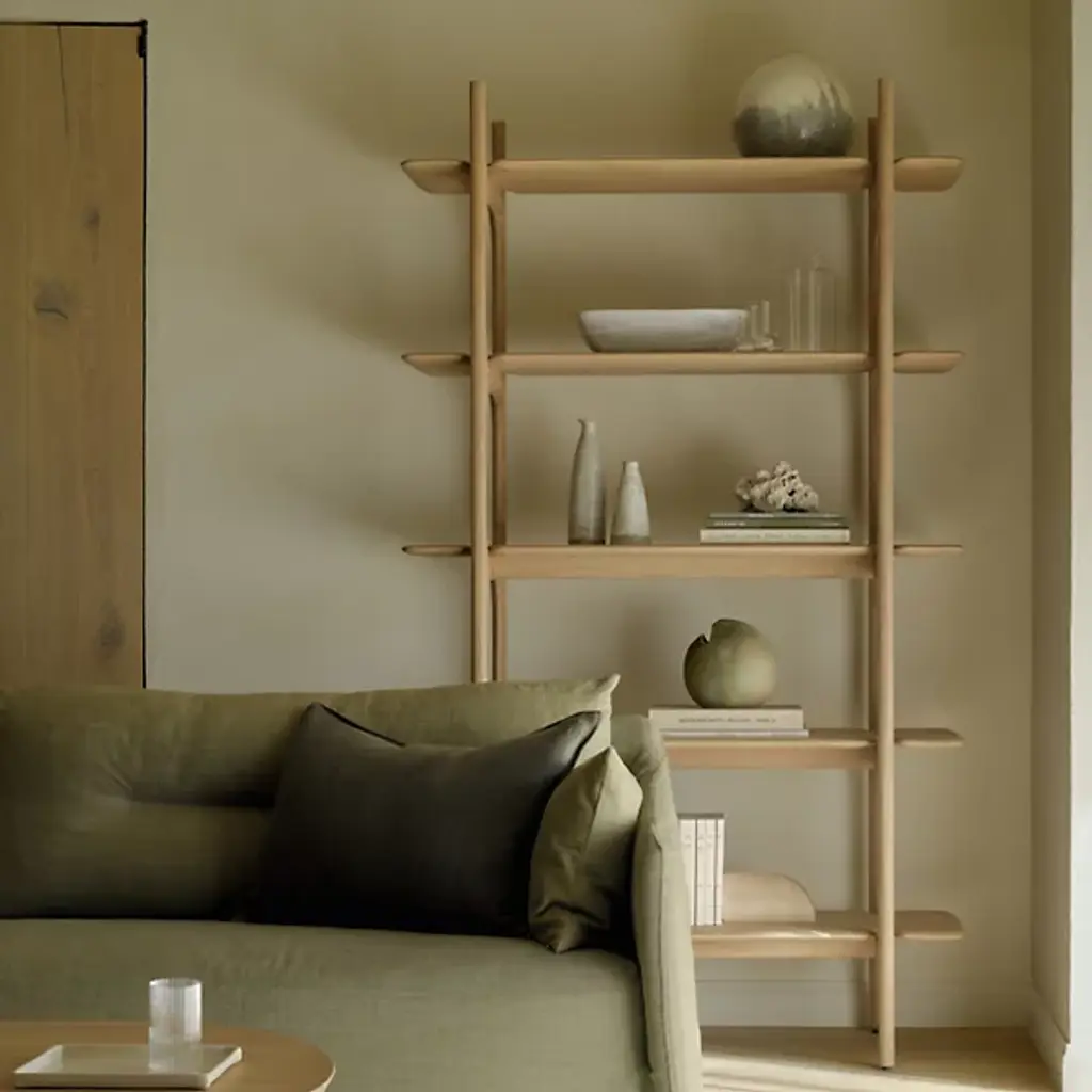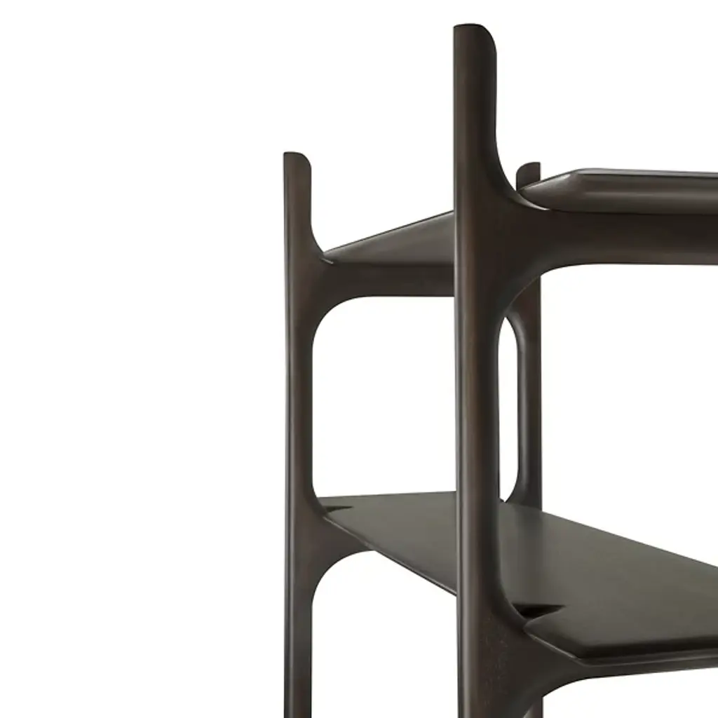 The PI Rack from Ethnicraft brings nature's organic patterns into functional design. Five graduated shelves, supported by crossbeam construction, provide ample space for books, artifacts, and treasured objects. The handcrafted details celebrate the wood's natural characteristics, with each piece individually finished to preserve its distinct grain patterns. Designed by Alain Van Havre, the sturdy vertical supports of this rack ensure stability without compromising the airy feel.
