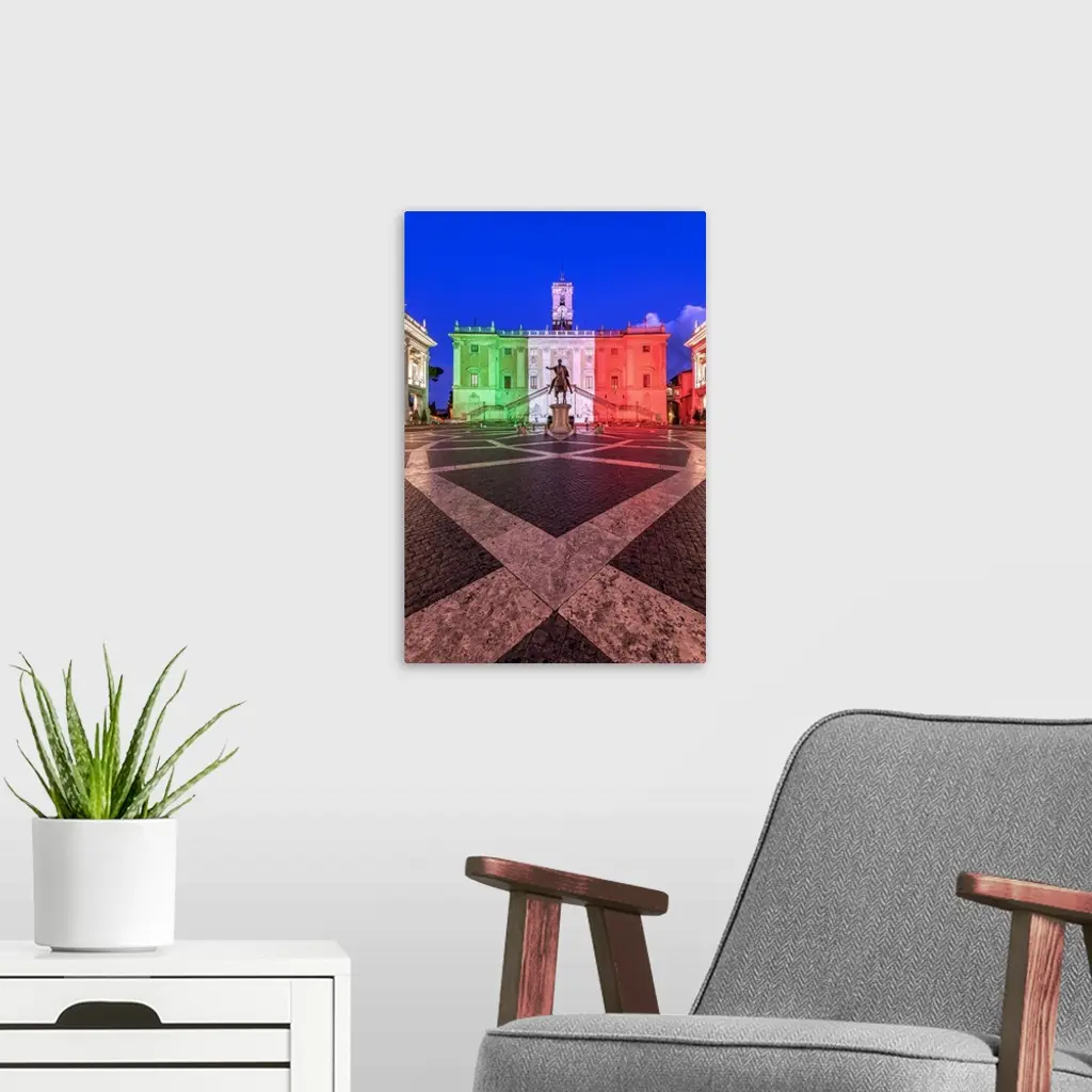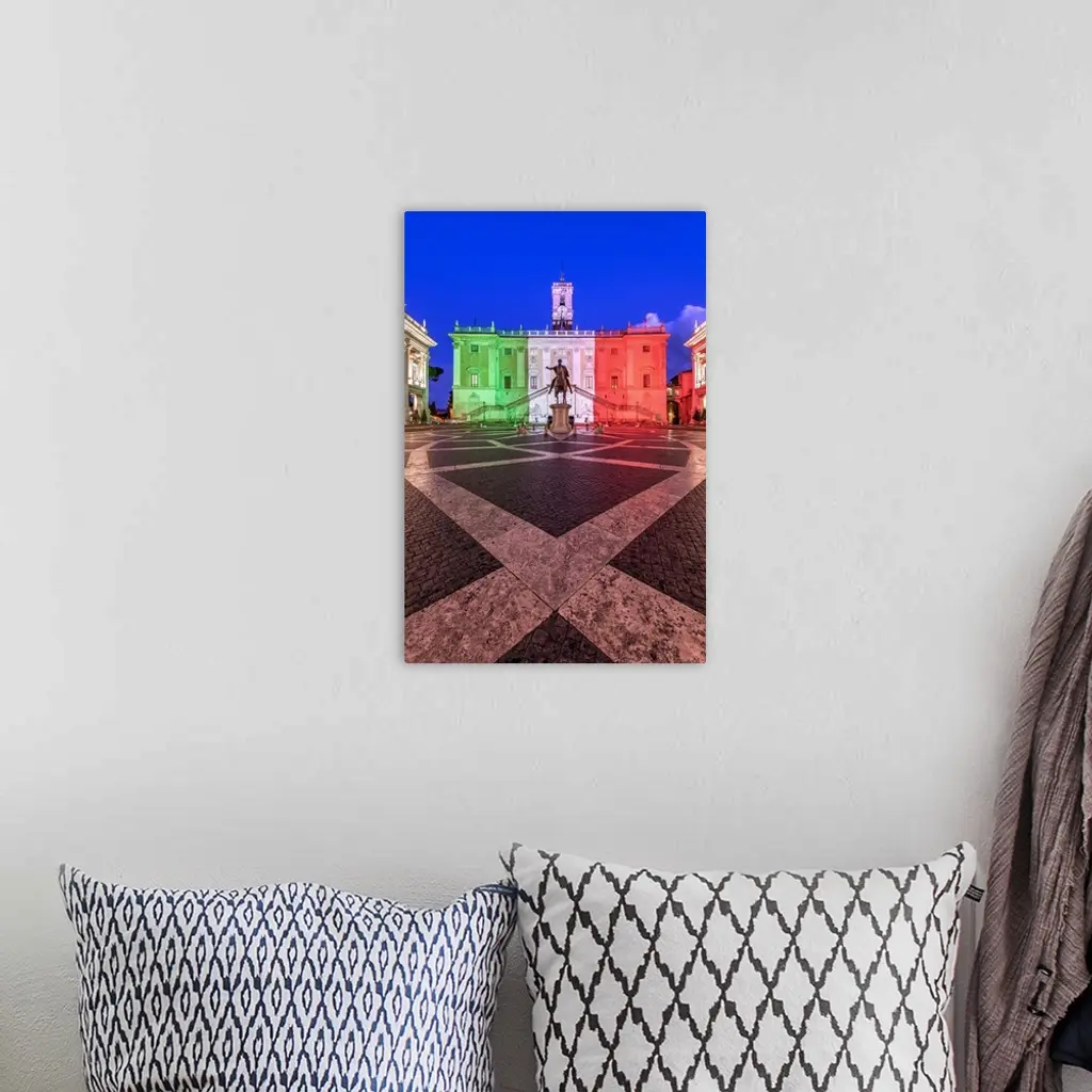 Piazza Del Campidoglio Illuminated With The Colors Of The Italian Flag, Rome, Italy