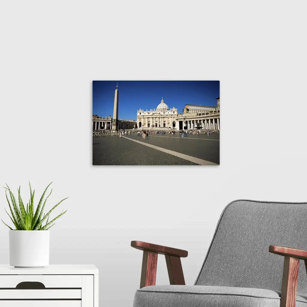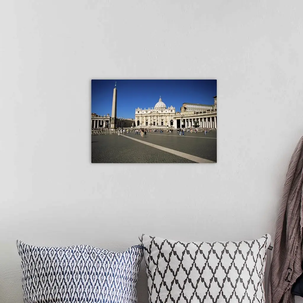 Piazza San Pietro, view to St. Peter's Basilica, Vatican City, Rome, Lazio, Italy wall art for home and office decor. Discover canvas art prints, photos, mural, big canvas art and framed wall art in GreatBigCanvas.com's varied collections.